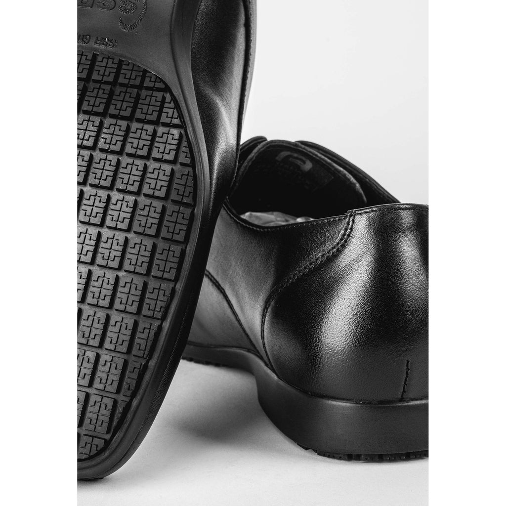 Trendy lace-up shoe design. Mainly for indoor use, avoid use in kitchens or very damp environments. Leather upper, non-marking SSR GRIP rubber outsole.