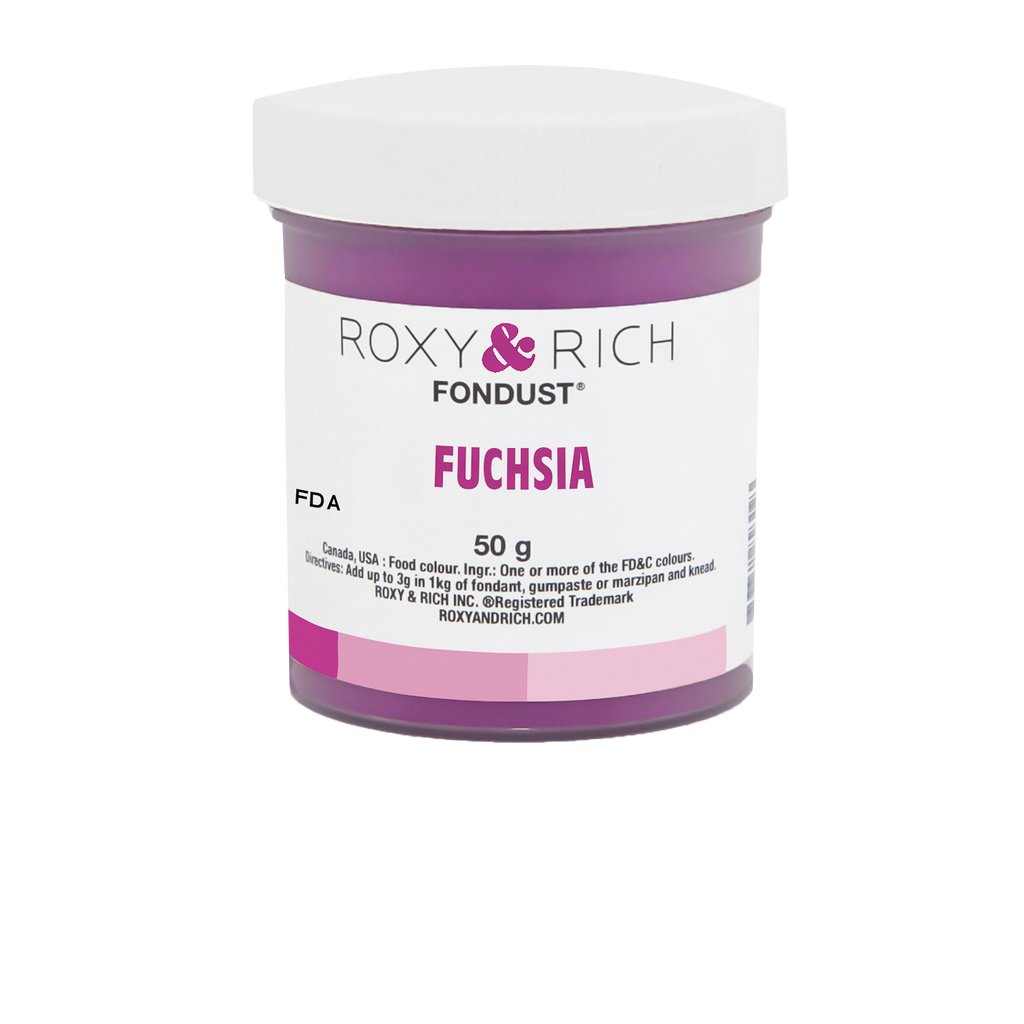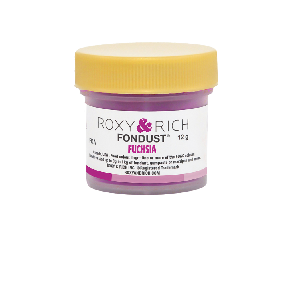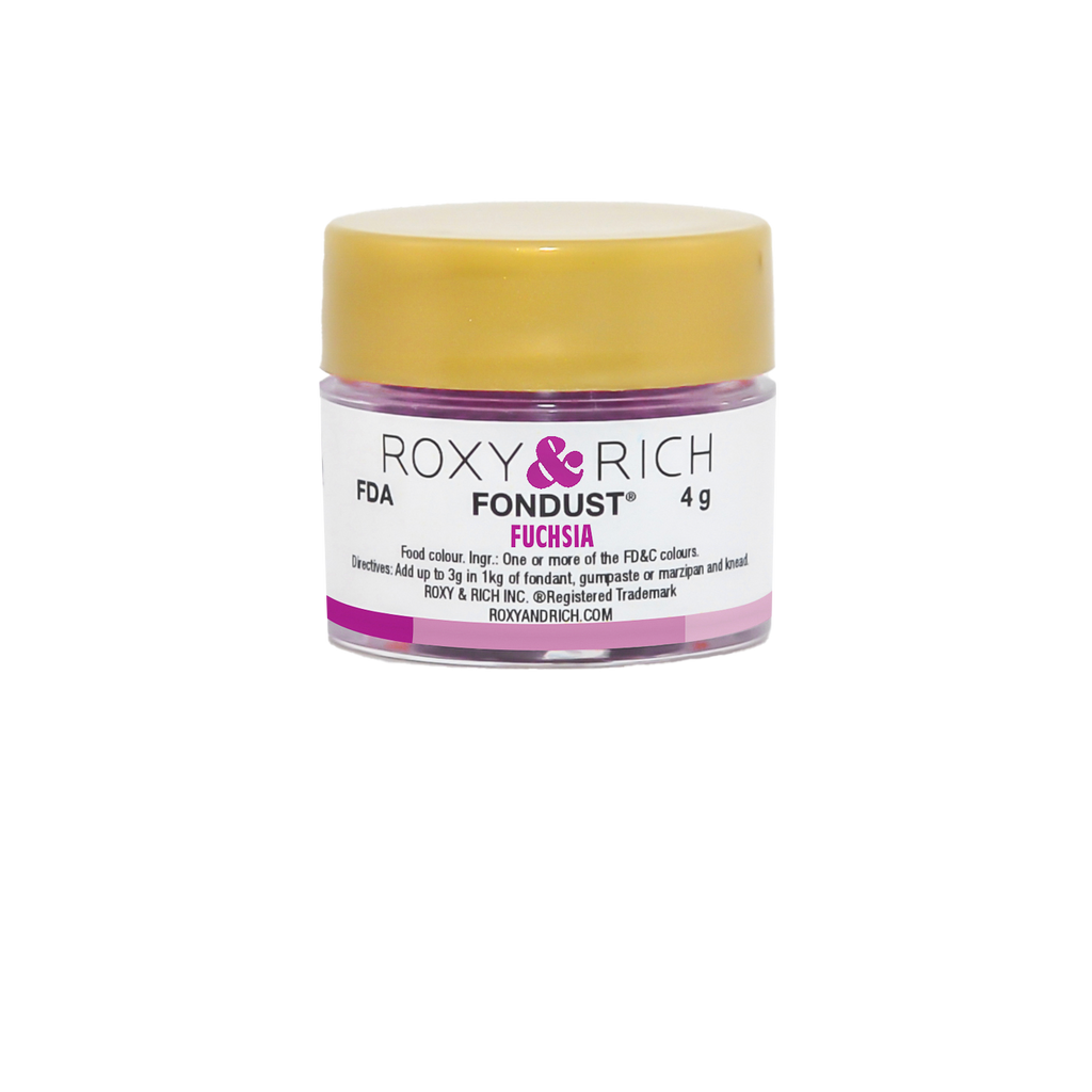 Easy to use, FONDUST is a microencapsulated food colouring especially designed for colouring food with very low water content. It can be used to colour fondant, sugar work (before or after baking), almond paste, royal icing, buttercream, cake mix, french macarons, decorating gel, candy, etc. Practically everything …. except pure chocolate. With FONDUST, you can achieve very dark colours, like black, red, blue and brown, as well as very bright colours, such as orange, green, pink and violet.