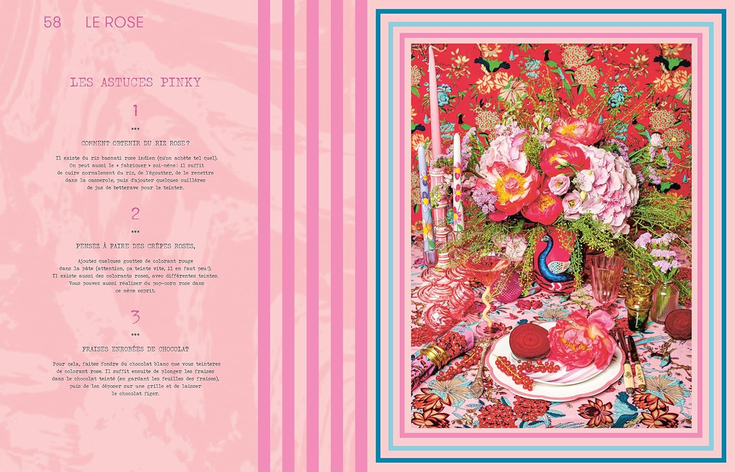 Ce livre a été imaginé pour faire rayonner quatre couleurs aussi bien sur votre table que dans vos assiettes : le rose, le jaune-orangé, le vert et le bleu-violet. Chaque chapitre vous invite à imaginer vos décors et ambiances sur le thème de la couleur de votre choix pour un dîner fabuleux. Un tout dernier chapitre "multicolore" vous permettra d'explorer une palette presqu'infinie de couleurs pour laisser libre cours à votre créativité.