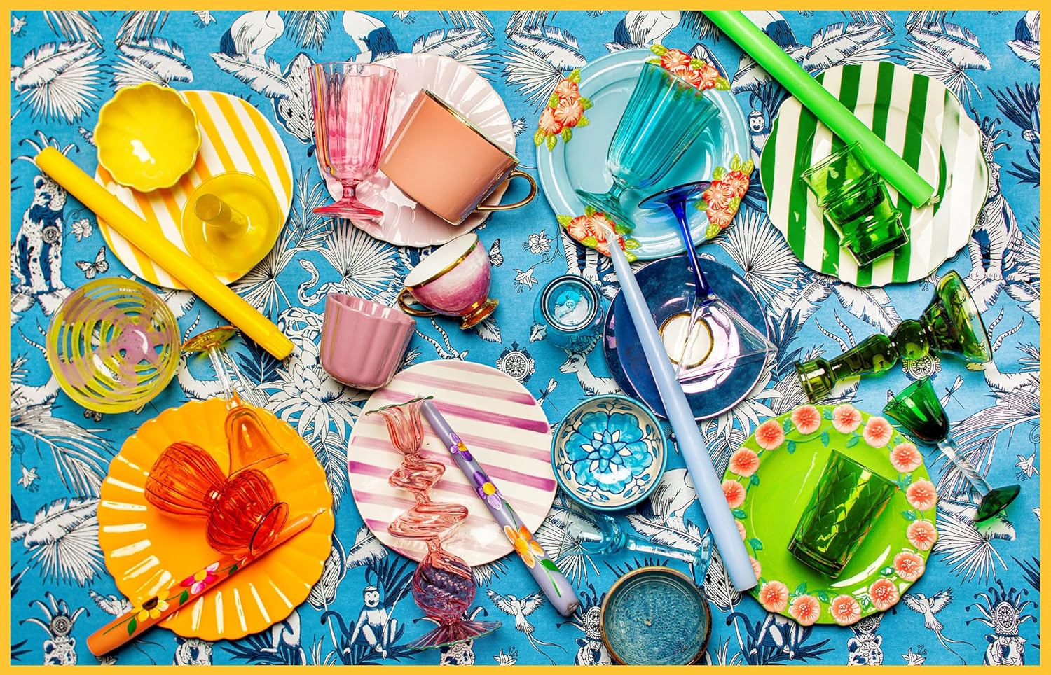 Amoureuse de l'univers de la table, Caroline de Benoist développe, depuis plusieurs années, une collection de céramiques peintes à la main et de linge de table créés artisanalement en Inde. Cette color-addict associe la couleur au bonheur et son univers est le reflet de sa vision de la vie : des couleurs denses et intenses, des motifs généreux qui s'entrechoquent avec harmonie et raffinement pour créer une atmosphère unique, spectaculaire et enchantée.