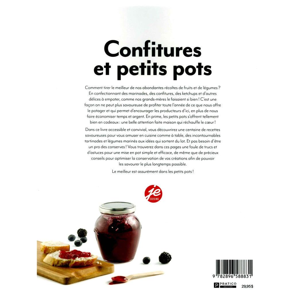 Dans ce livre accessible et convivial, vous découvrirez une centaine de recettes savoureuses pour vous amuser en cuisine comme à table, des incontournables tartinades et légumes marinés aux idées qui sortent du lot. Et pas besoin d'être un pro des conserves! Vous trouverez dans ces pages une foule de trucs et d'astuces pour une mise en pot simple et efficace, de même que de précieux conseils pour optimiser la conservation de vos créations afin de pouvoir les savourer le plus possible.