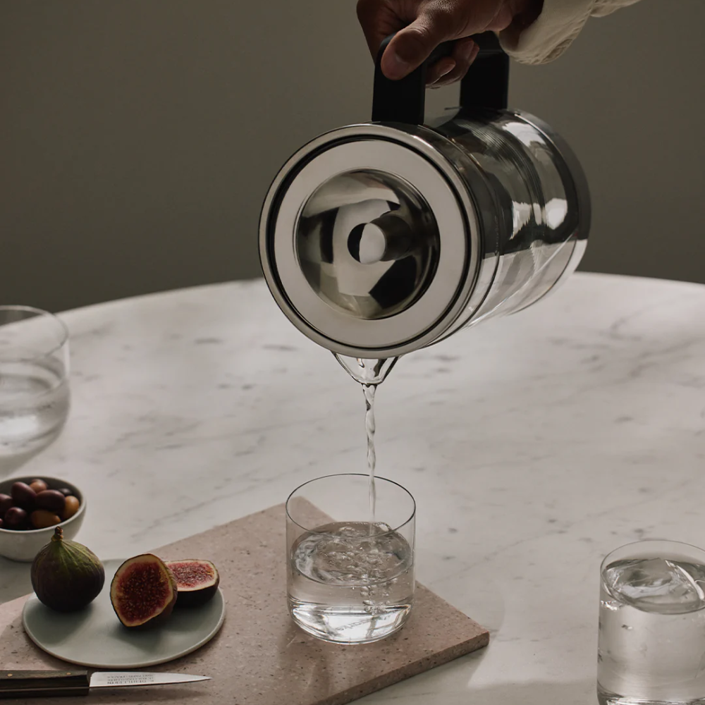 The Purifier Large is a timeless glass carafe without plastic cartridges. Instead: a refillable stainless steel cartridge with filter granules inside. The Purifier Large features the same filtration technology as the original Purifier and can hold a larger volume of almost 1.7 L of filtered water.