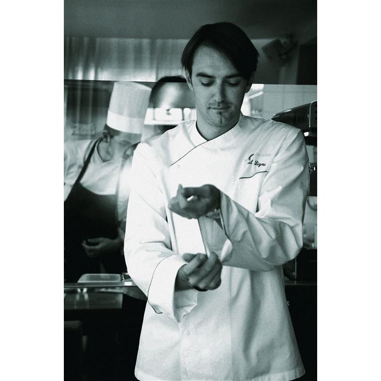 « La cuisine que j’aime proposer dans mon bistrot Le Chardenoux est avant tout une cuisine sincère et authentique, celle du produit pour le produit. À ma façon, j’aime faire revivre des recettes anciennes, parfois oubliées, comme ces girolles cuisinées aux noisettes ou bien cet os à moelle accompagné de sa côte de bœuf que l’on déguste à la cuillère… »