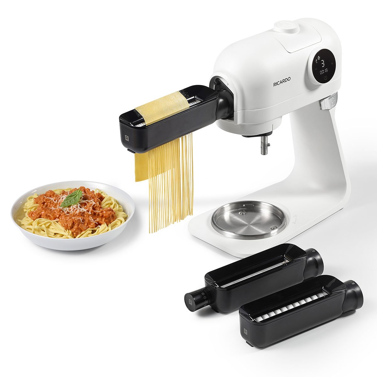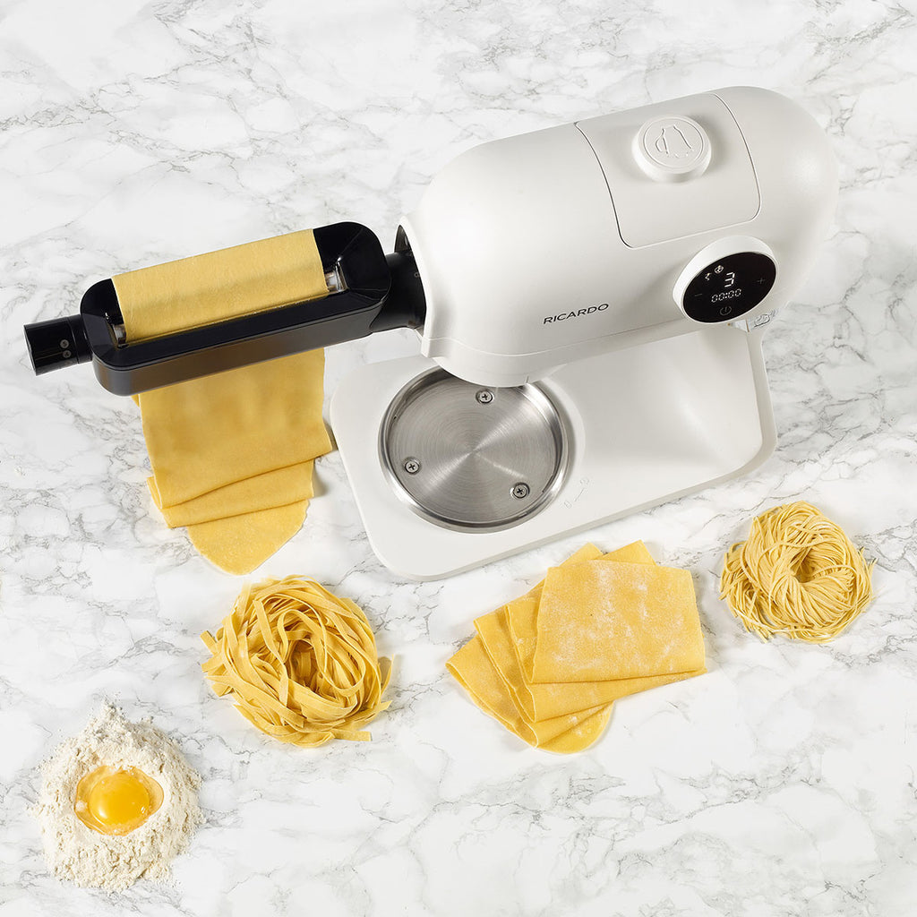 Make fresh pasta quickly and easily with this pasta sheeter and cutter set for the RICARDO stand mixer. It includes three accessories: a pasta sheeter with five thickness settings to create pasta sheets for fettuccine and linguine. Ideal for making lasagna, cannelloni or hand-cut pasta.