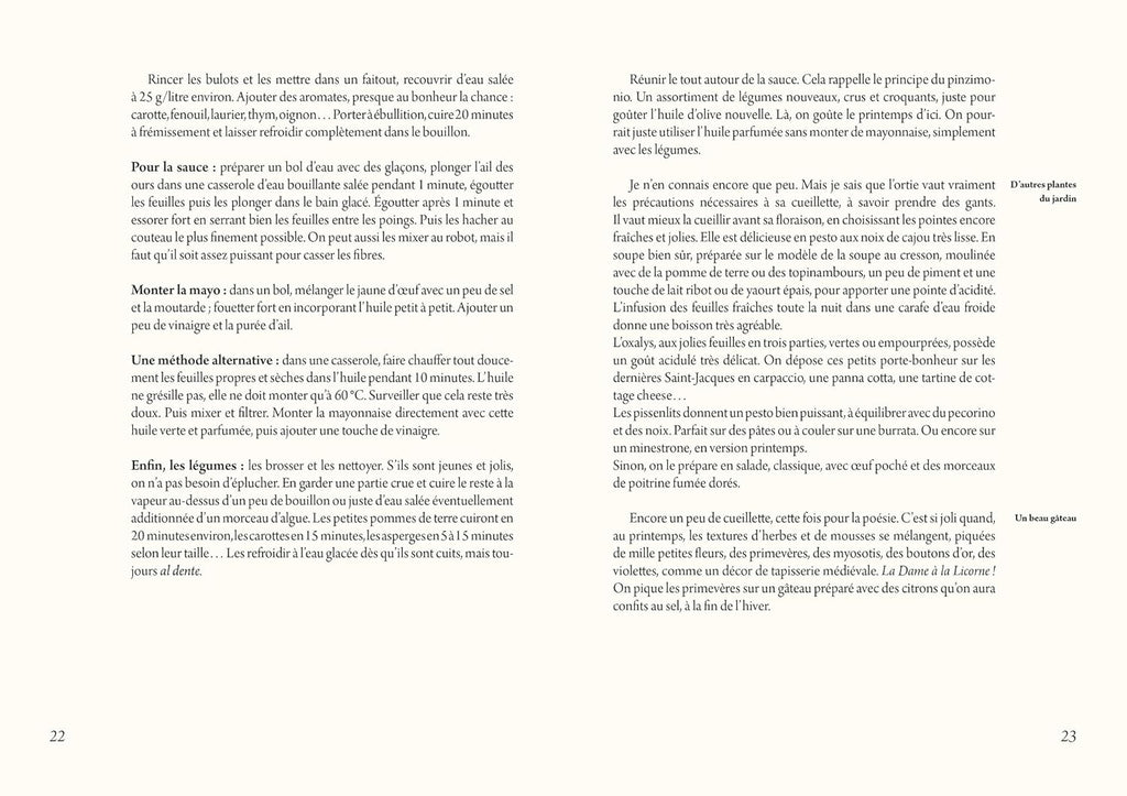 Faire la cuisine, c’est une histoire d’humeur et de contexte : on est six, dix, deux, juste soi ? Il fait beau, il fait triste ? C’est la fête ? On avait mis quoi dans son cabas ? Adapter la liste d’ingrédients, goûter au fur et à mesure ce que l’on prépare, assaisonner subtilement, cuire al dente ou laisser confire à feu très doux...