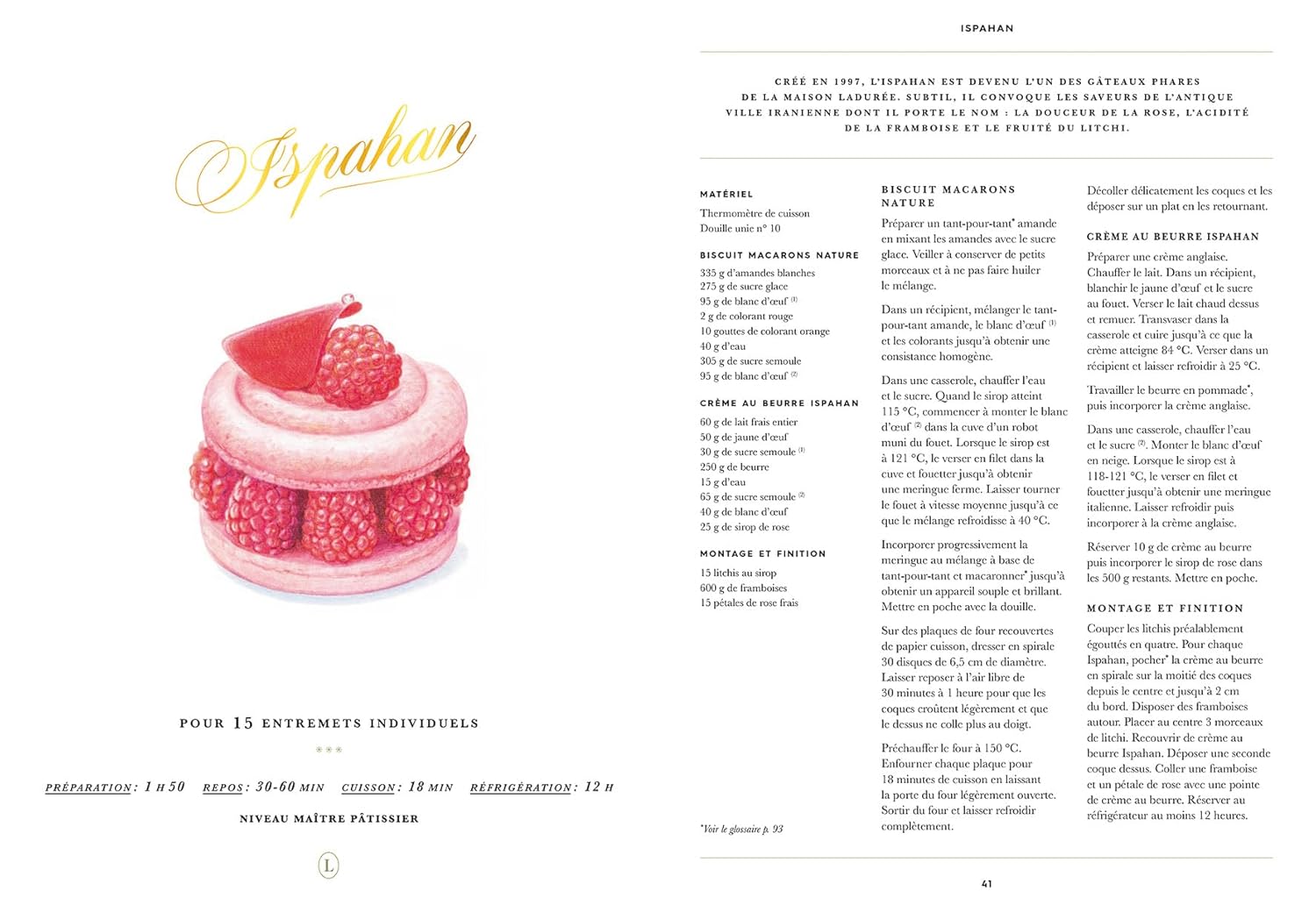 Ispahan légendaire, Plaisir sucré savamment chocolaté…Chacune de ces recettes, joliment illustrées par Iris Hatzfeld, livre ici ses secrets. Un ouvrage, ciselé comme un bijou pâtissier, pour retrouver chez soi le goût de la Maison Ladurée.