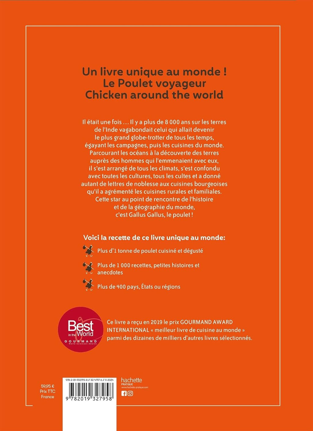 Le Poulet Voyageur raconte l'histoire du poulet, devenu un globe-trotter mondial, et propose plus de 1000 recettes et anecdotes de plus de 400 régions.
