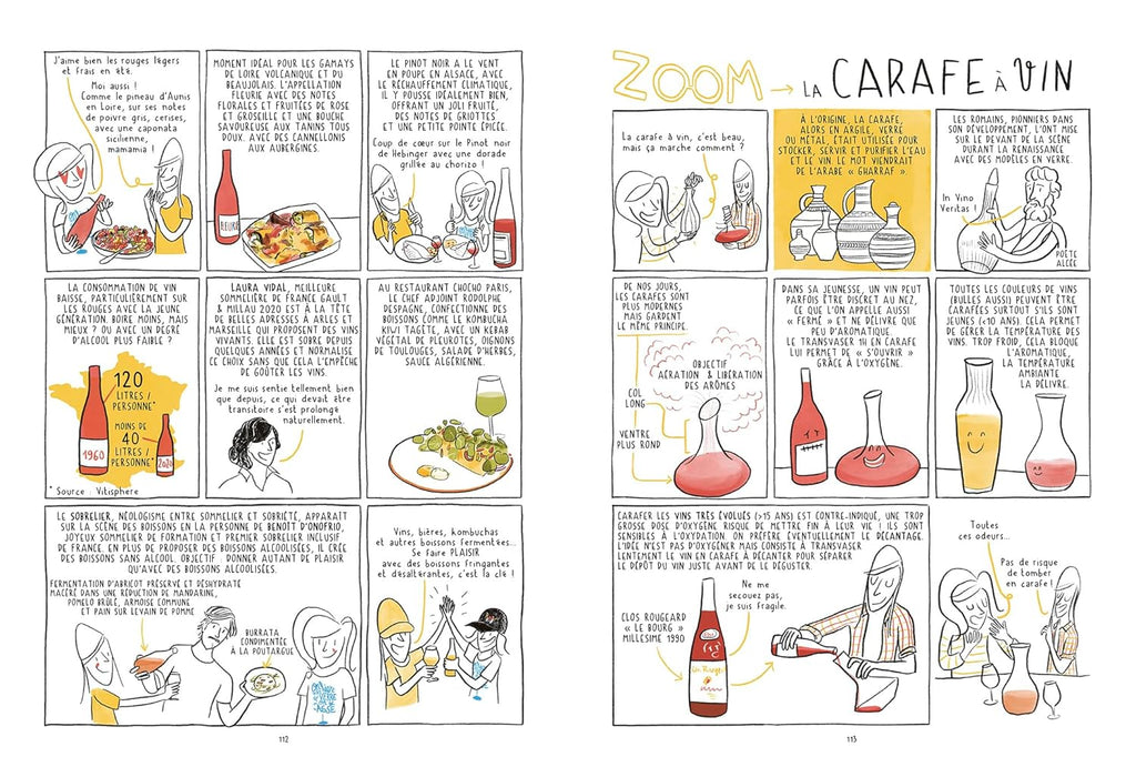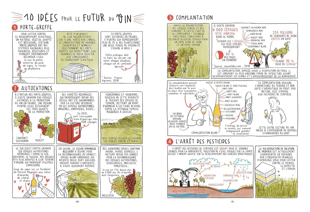 Après le succès de leur premier roman graphique In Vino Femina, Alessandra et Céline ont eu envie d’aller plus loin, de dire plus, de s’interroger sur l’humain derrière le vin, sur le dérèglement climatique et son impact sur la vigne et son environnement, sur le travail dans le chai et nos modes de consommation, sur ce qu’il se passe dans notre assiette.