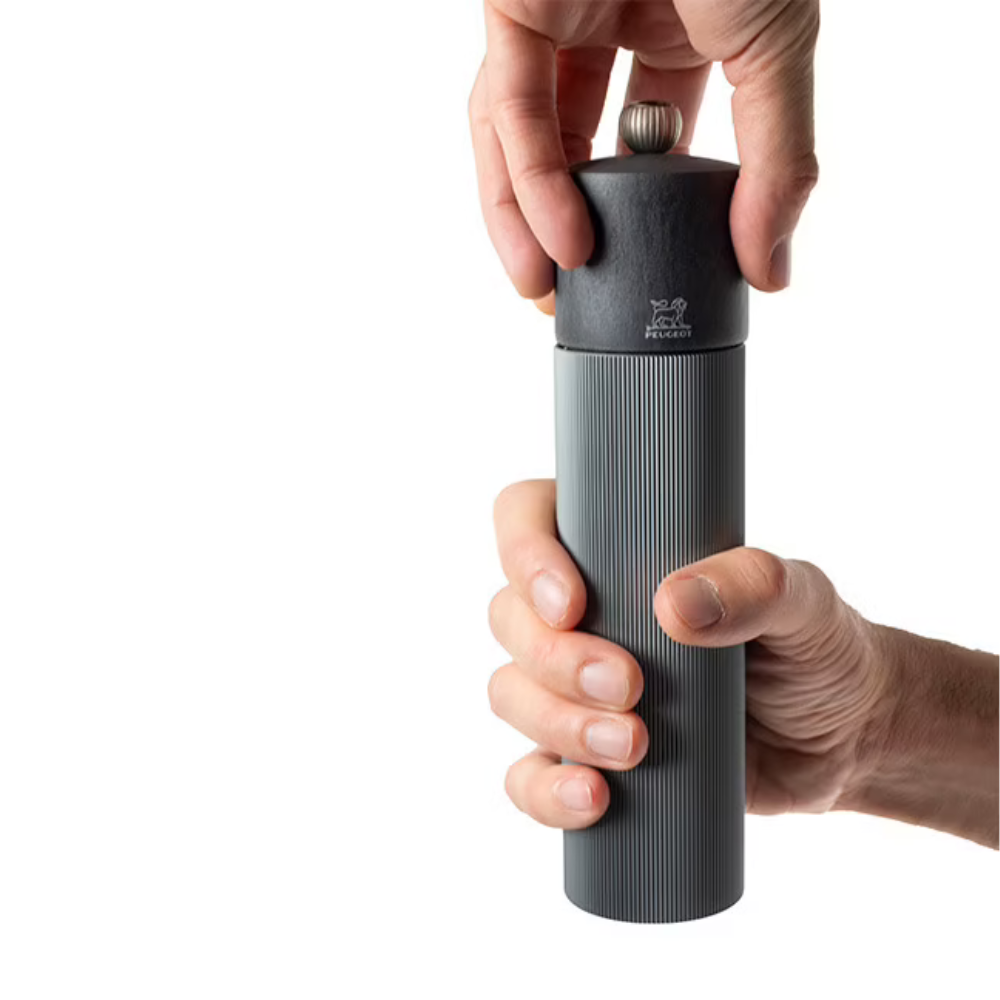 With a contemporary design and made in France, the Line pepper mill is the perfect sleek addition for the modern table. The iridescent shade of Line’s aluminum body perfectly matches the subtly metallic graphite color of its beechwood cap (which is made from PEFC certified wood). Line also reflects Peugeot's expertise: its steel mechanism is specially designed to grind pepper and is guaranteed for life. The top button offers a simple and efficient grind adjustment (the tighter it is, the finer the pepper grind).
