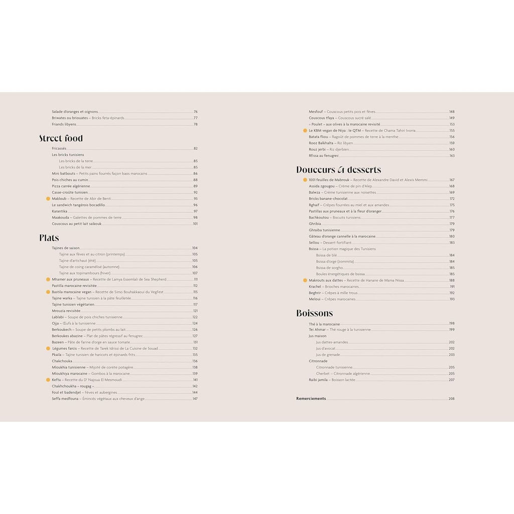 Partez à la découverte de 100 recettes emblématiques de la région et des cuisiniers qui les élaborent, entre tradition et renouveau. Matlouh ou chapati, mchermel, chorba ou bakoula, tajines, couscous et chakchouka : ces plats ensoleillés à partager côtoient les meilleures recettes de street food, de desserts et de boissons. Les plats du Maghreb version veggie n’auront bientôt plus de secret pour vous.