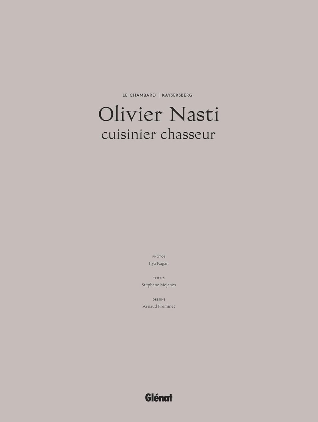 Ce livre reflète son amour de la nature, sa connaissance des animaux, tout en expliquant les modes de conservation, de découpe et de cuisson de la viande dont il est un expert hors pair. Si Olivier Nasti, technicien virtuose, est l'un des Meilleurs Ouvriers de France, la cuisine qu'il a développée au Chambard en fait un chef unique en son genre.