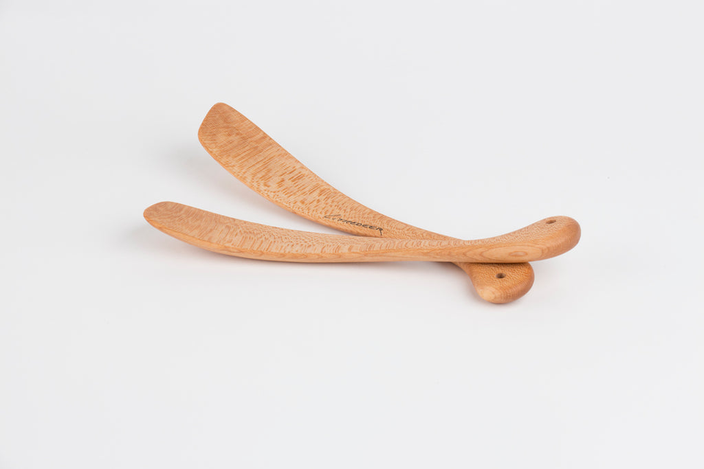 Gourmet Paddles are distinguished by their hydrodynamic designs, unique names, and the exceptional quality of their maple wood. All our products are hand-carved and individually signed . The edge, tip, and curve of each utensil fulfill a specific function.