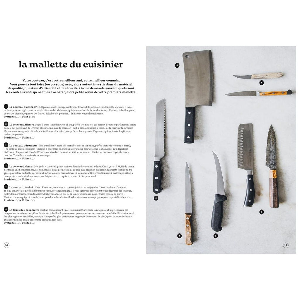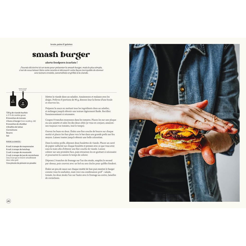15 CHAPITRES POUR VOUS LANCER : les indispensables, levain & pains & galettes, pasta & ravioli, riz, patates, oeufs, bouillons & soupes, viandes, poissons, pickles & fermentation, huiles & beurres & sauces, légumes, salades, apéros & barbecue, desserts & douceurs, amusezvous.