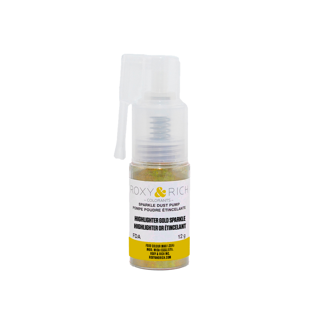 Those sparkle dust pumps render an astonishing metallic finish on icing and butter cream and are edible. It consists of a food grade mica pearlescent pigment. The product provides a uniform metallic effect.