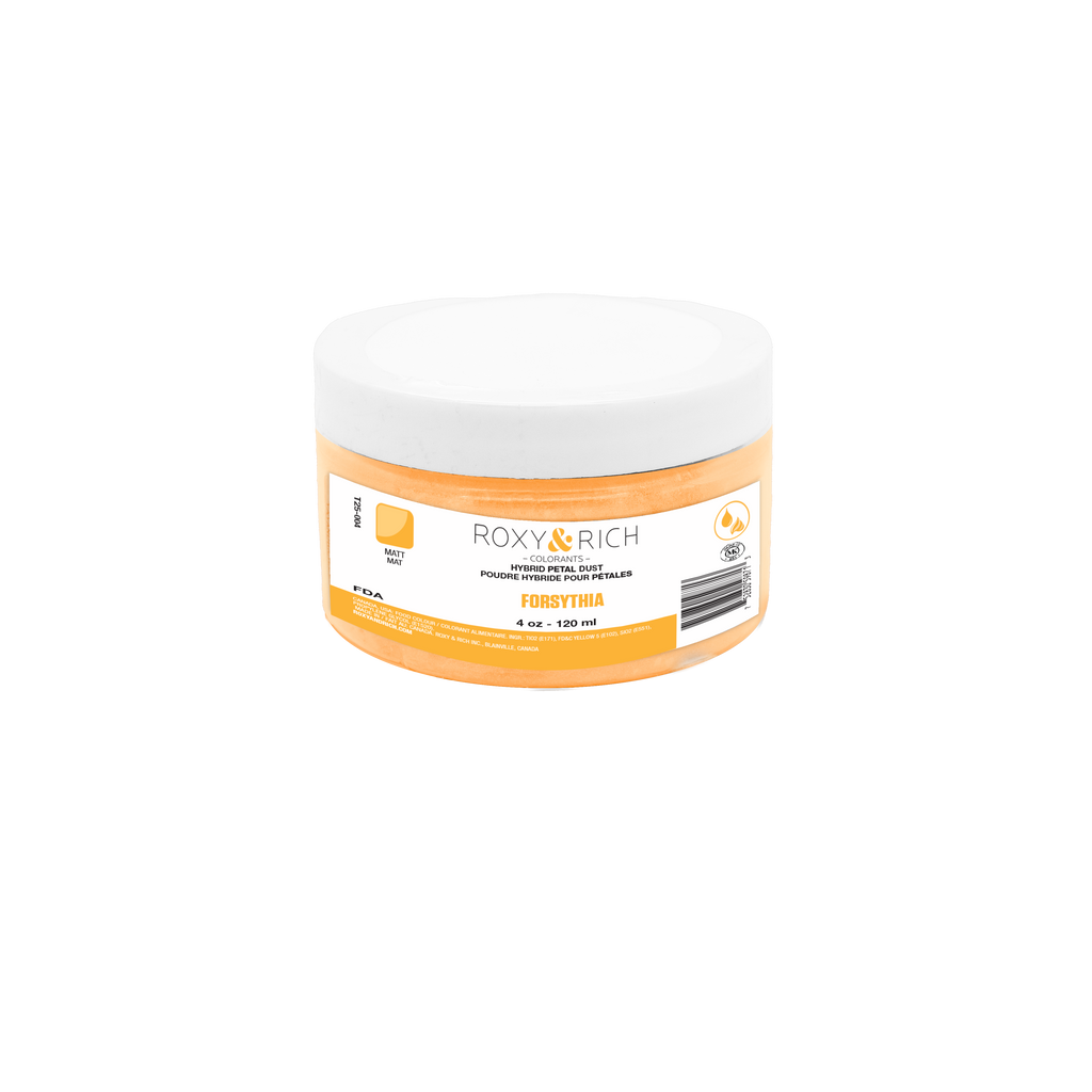 Hybrid Petal Dust is water soluble. It is designed for dry application using a brush. It can also be used to colour most other food products. It contains microcapsules of liquid colour that activate upon brushing. The collection includes 115 colours that span the full visible spectrum.