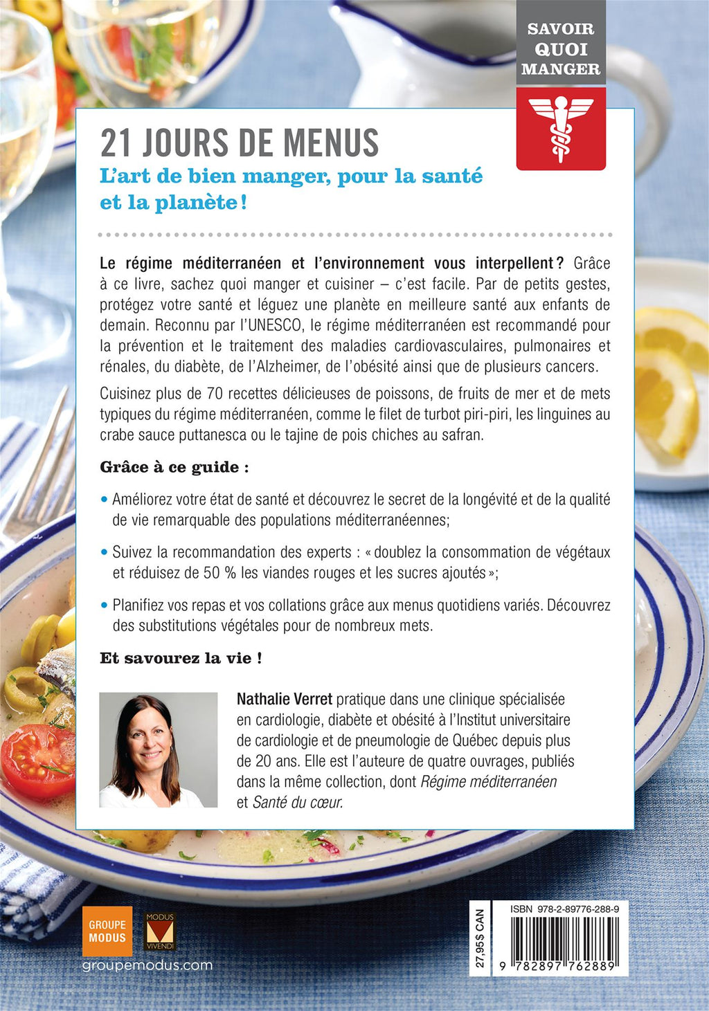 Le Régime méditerranéen et l'environnement vous interpellent? Grâce à ce livre, sachez quoi manger et cuisiner – c'est facile. Par de petits gestes, protégez votre santé et léguez une planète en meilleure santé aux enfants de demain.