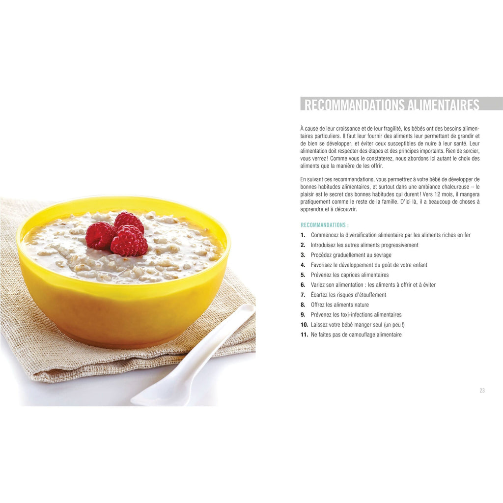 Découvrez des recettes pour petits et grands, faciles et rapides à préparer: purée d’ananas, purée de poivrons rouges, purée de poulet, biscuits à l’avoine, mini muffins aux pruneaux, boulettes de viande et de pois chiches, mini pains de lentilles, filets de poisson croustillants aux amandes, risotto aux crevettes nordiques, sandwichs de pain perdu au fromage, tofu aux fraises, pouding à la banane… et inculquez à votre bébé le plaisir de bien manger.