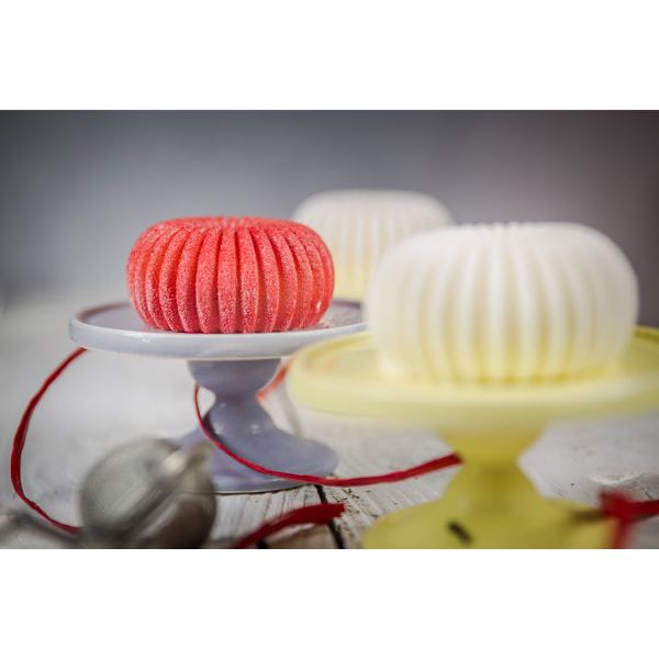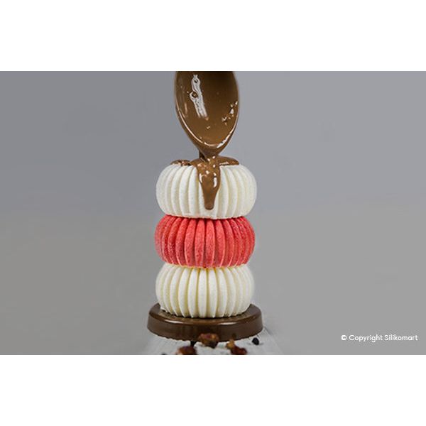 Mini Raggio: An essential shape for a single portion, enhanced by an original touch to bring a fan of new tastes in the kitchen. Thanks to the ray pattern you will obtain a refined and impressive dessert. Each cavity of the mould Mini Raggio, of the line 3Design by Silikomart, is provided with a revolutionary internal border which gives a slightly round base to your creations. Mini Raggio guarantees impeccable results not only as a semifreddo or mousse, but also in the baked version.
