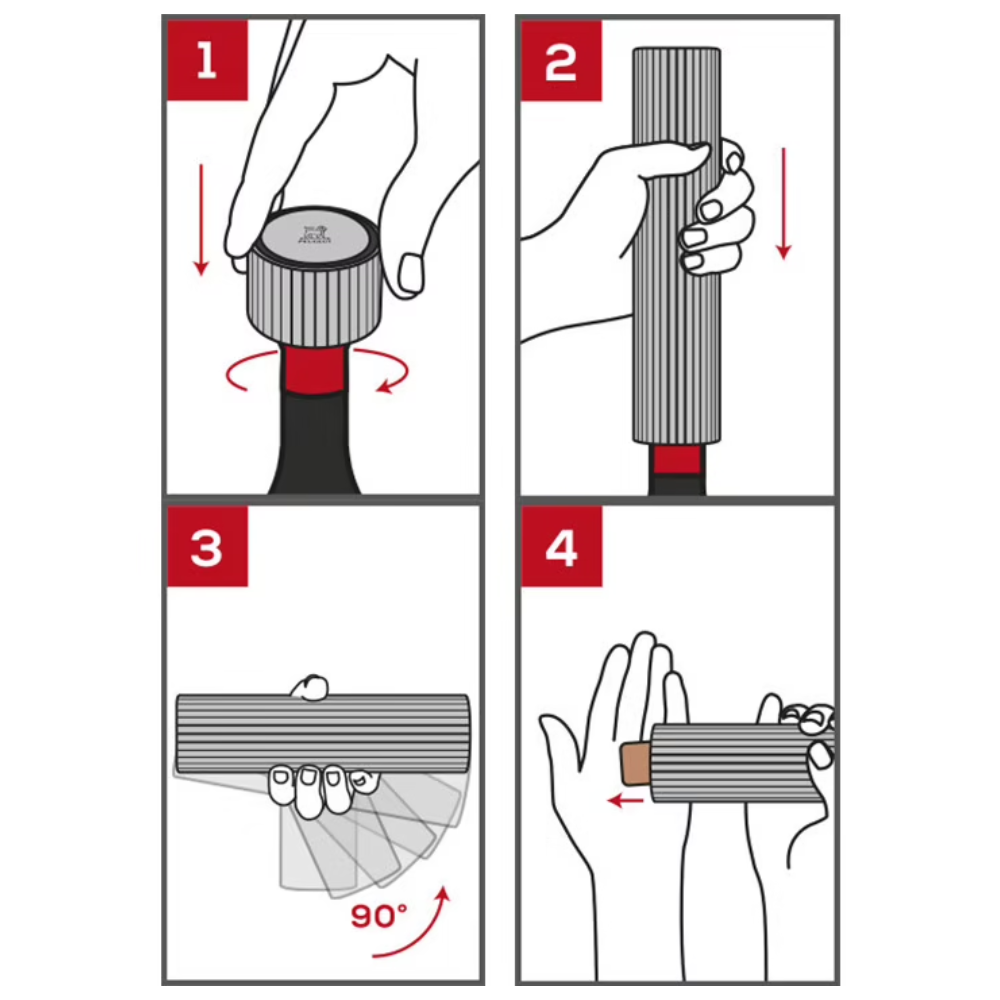 Metalworking has always been inextricably woven into Peugeot's DNA. With its aluminum finish, Line Reverse reflects Peugeot's ability to break new ground by offering a fully automatic rechargeable electric corkscrew with a clearly graphical and contemporary design. Line Reverse is fitted with the latest-generation Li-ion battery for 80 extractions with a single charge and fast charging in 2.5 hours. Corks can be extracted by simply pressing the corkscrew down on the bottle. Once the bottle has been opened, a simple flick of the wrist will eject the cork from the corkscrew. Line Reverse is available here in a carbon finish with a matching foil cutter.