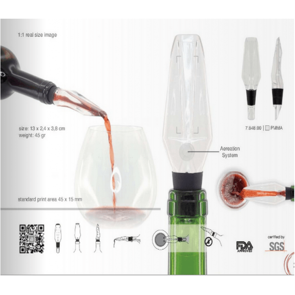 Pulltex AirVin produces an indoor air stream that creates a constant flow of bubbles to aerate the wine.