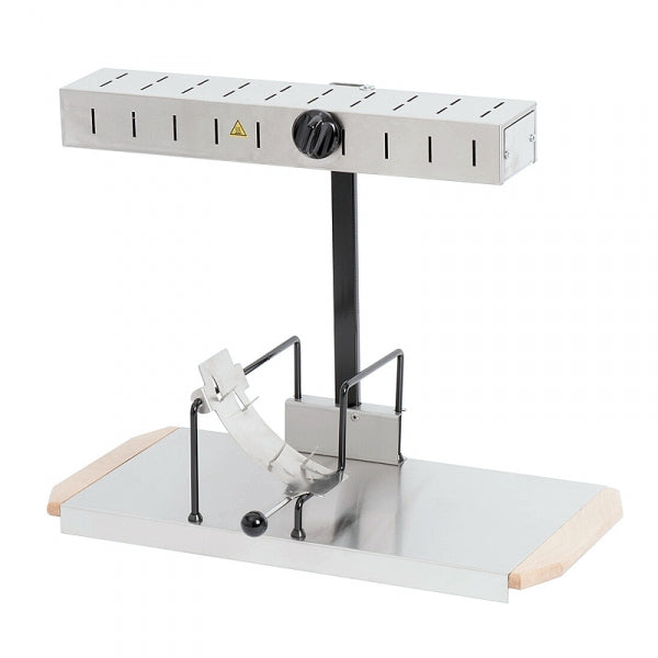 The Alpage 1/2 Raclette maker promises to make your evenings even more delicious and convivial. It features a horizontal heating element that can be adjusted in height. The cheese holder of the traditional raclette machine can be tilted, so the surface of the cheese wheel is perfectly gratinated. Using the raclette knife, scrape the melted cheese to pour directly onto your plate.