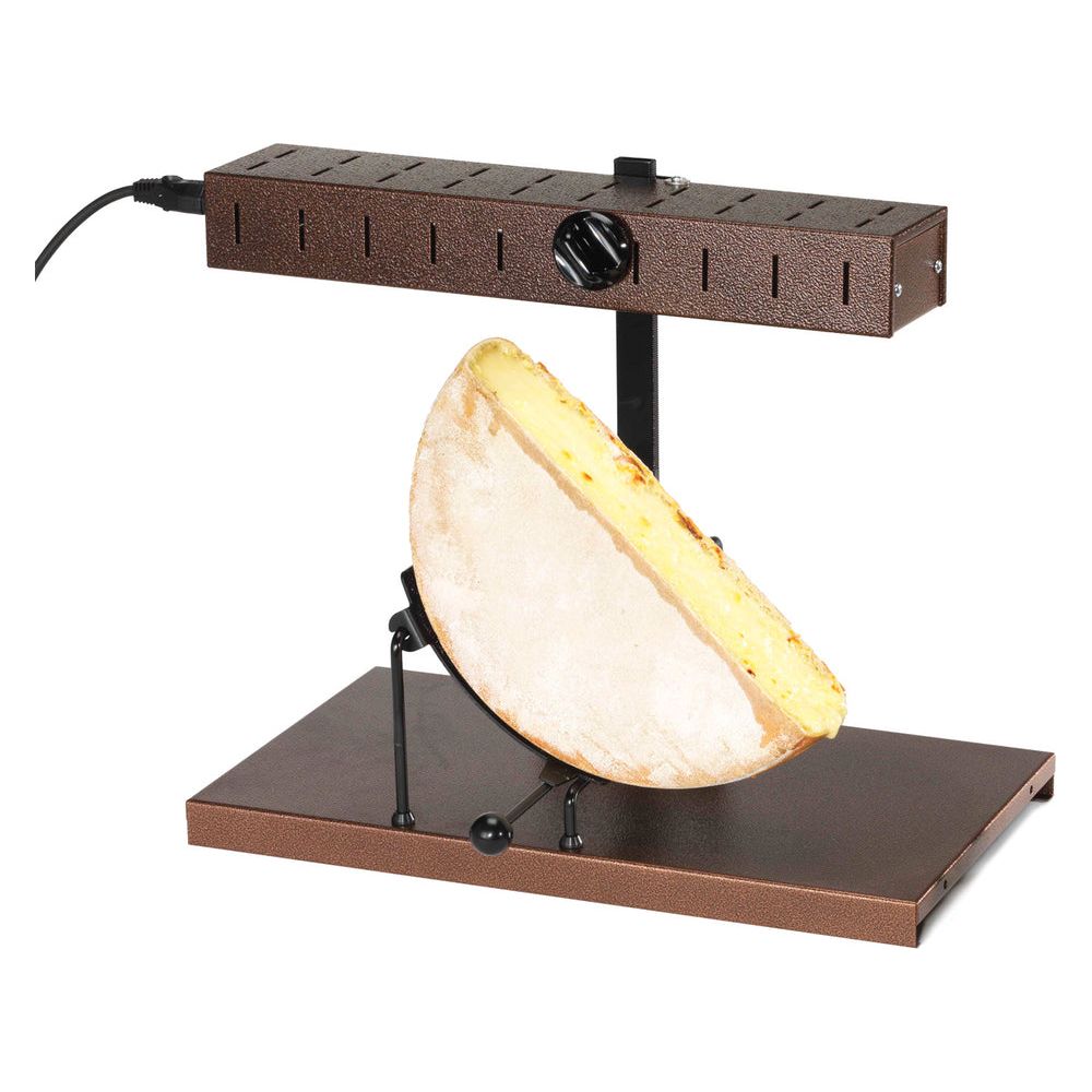 The Alpage 1/2 raclette machine promises evenings of gourmet pleasure and conviviality. It features a horizontal heating element that can be adjusted in height. The cheese holder of the traditional raclette machine can be tilted, so the surface of the cheese wheel is perfectly gratinated. Using the raclette knife, scrape the melted cheese to pour directly onto your plate.