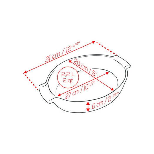 The ecru oval ceramic baker from Peugeot will become your go to baker. 31-cm in size, it is ideal for family size recipes without taking up too much space. The high rim increases the dish capacity and retains all cooking juices for a flavorful and successful meal experience. The dish is suitable for use with traditional ovens, microwaves and freezers. Make life easier by cleaning it in the dishwasher.