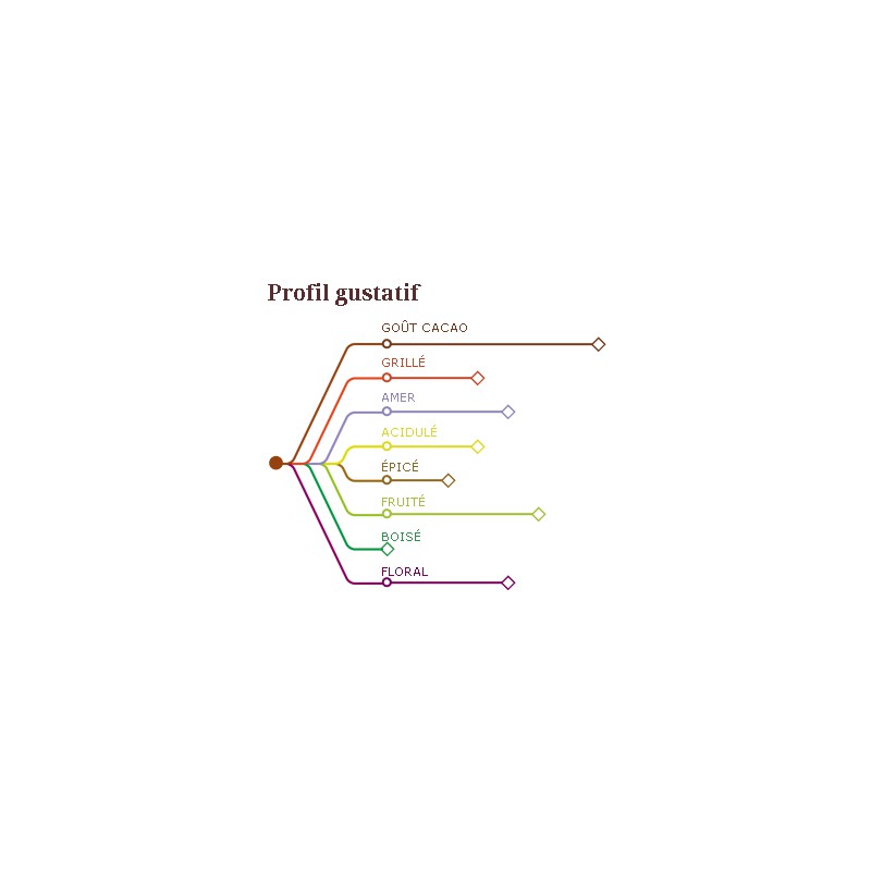 The Hispaniola beans from Santo Domingo reflect the lush landscapes of the Greater Antilles archipelago. Exotic and fruity, Santo Domingo chocolate has a round bitter cocoa taste with an exceptional length in the mouth, complemented by aromatic notes of spices, wine and olives.