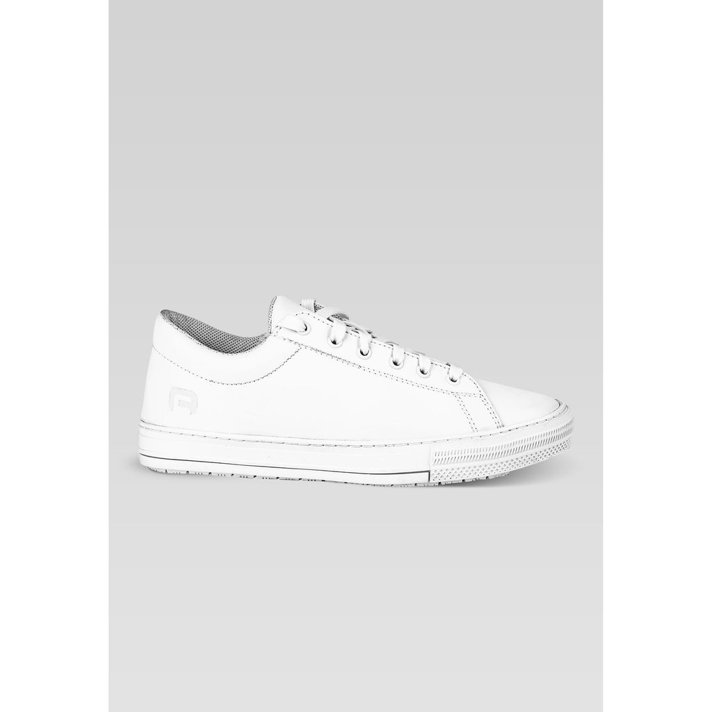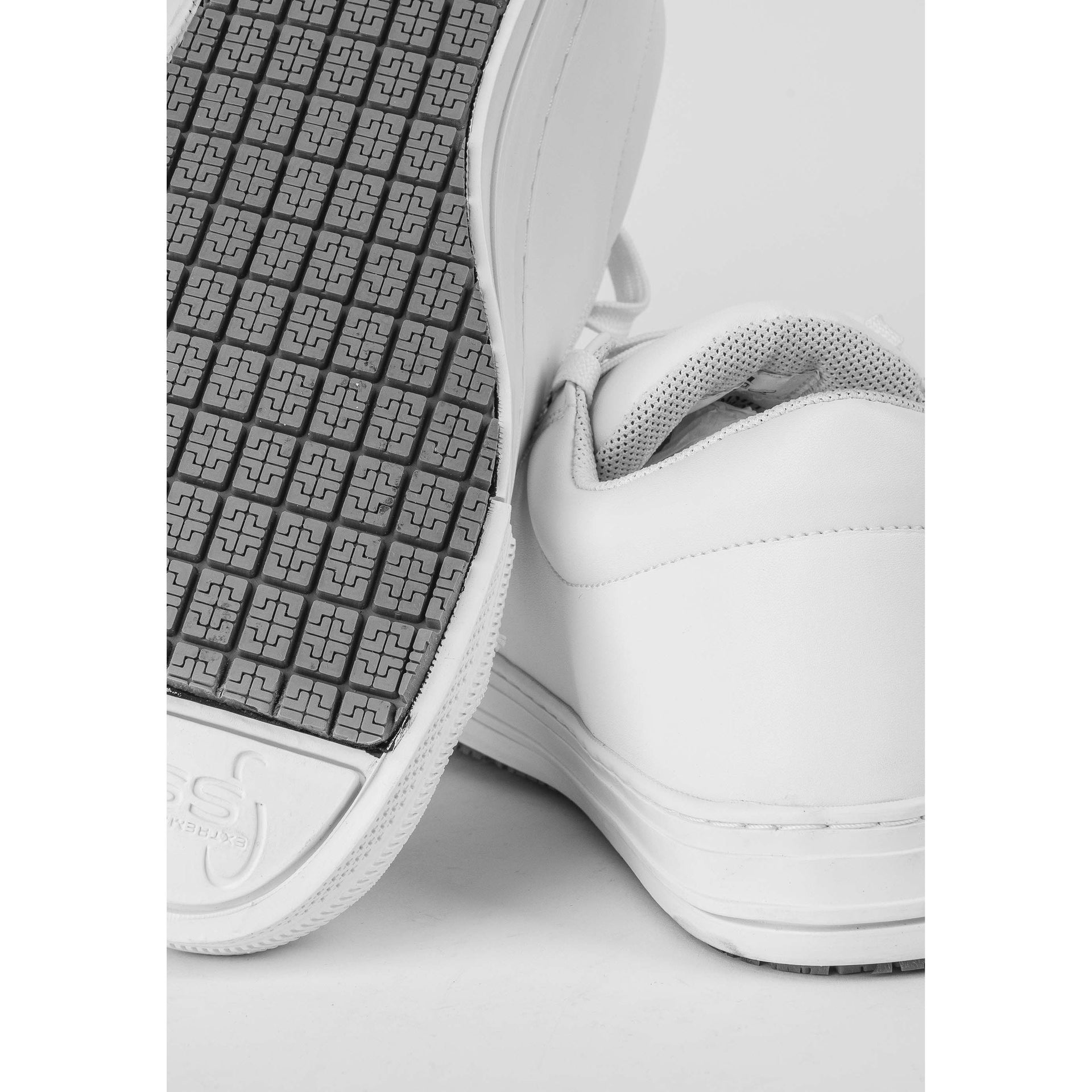 Lace-up sneaker. SSR GRIP non-slip, non-marking rubber contact sole, glued and stitched to the upper for added strength.