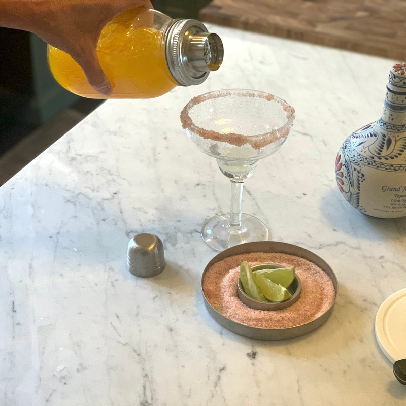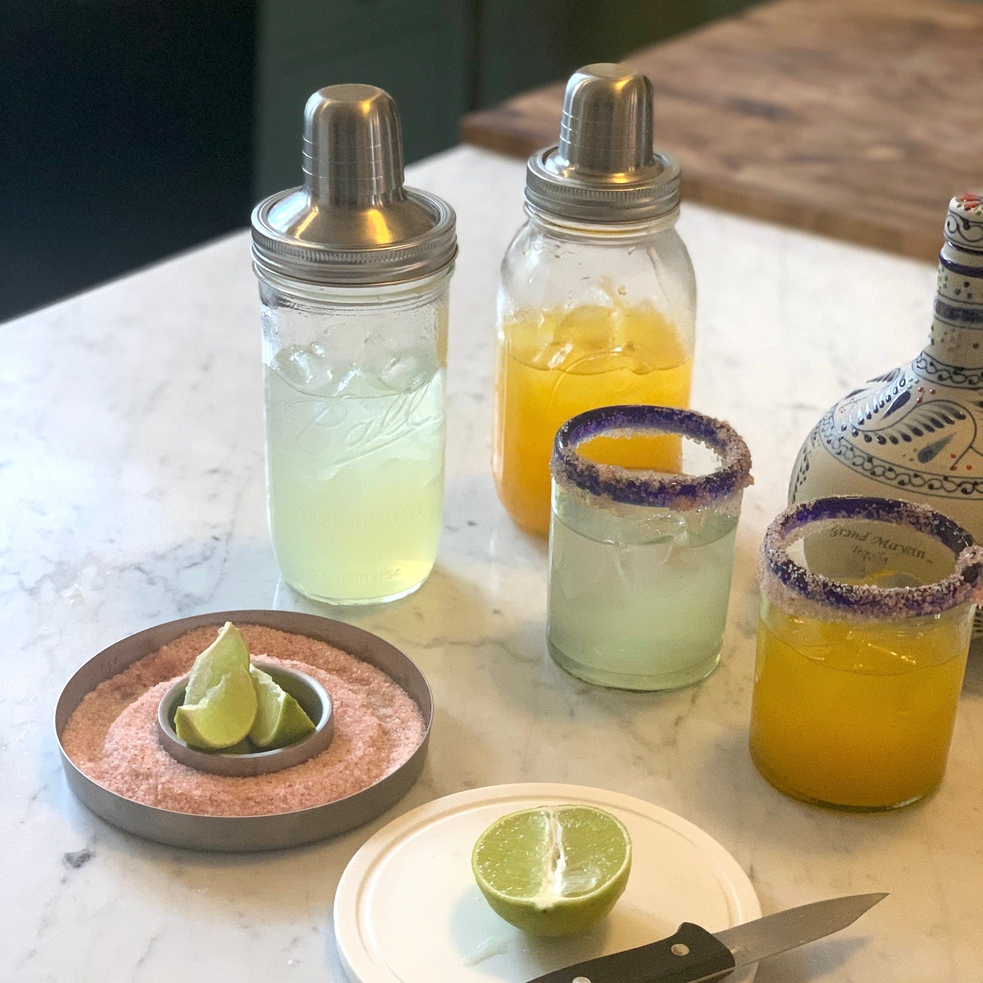 Turn your normal opening Mason jar into a cocktail mixer and shaker! Measure, close to mix and strain to serve.