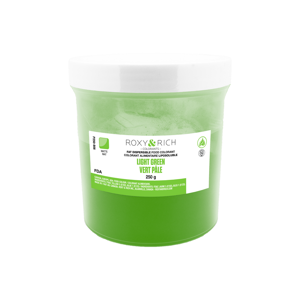 Water-insoluble aluminum-based food colorings are used to color oil-based products such as chocolate, buttercream, and confectionery and pastry coatings. They are ideal for limiting color migration when several shades are used together.