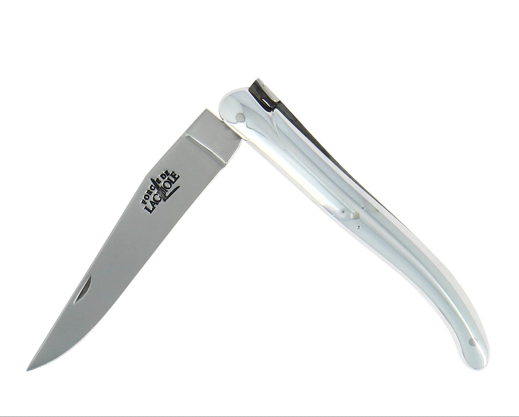 The iconic Laguiole knife revisited by designer Philippe Starck, this gives a full-handle model in shiny stainless steel, enough to give a real boost of shine and modernity to the traditional Laguiole folding knife.