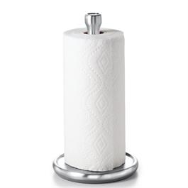 Paper Towel Holder, 13" H / 33cm H, stainless steel. Convenient one handed towel dispensing. Offers a smooth rotation for effortless ripping. Recessed base prevents towels from unraveling. Designed for quick, easy loading. Stable, weighted, non-slip base. Accomodates regular and jumbo size rolls.