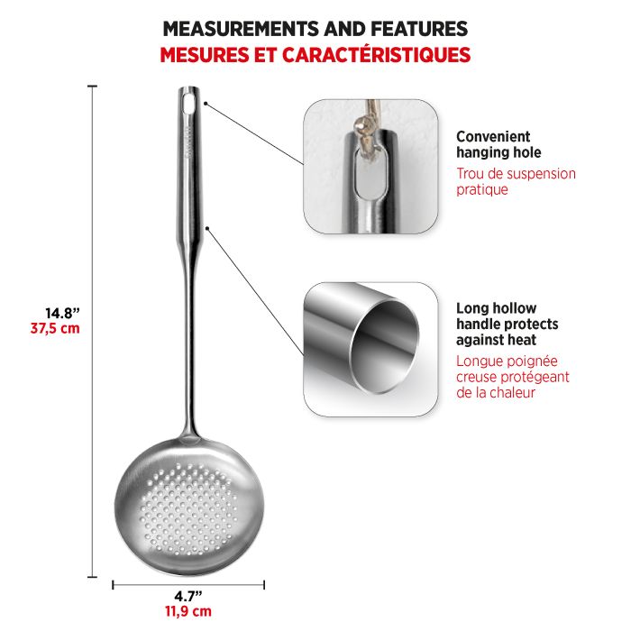 Indulge in exotic flavors right in your kitchen with this Asian-style skimmer. Whether you're making broths or frying, this stainless steel skimmer is the perfect tool to unleash your creativity in the kitchen.