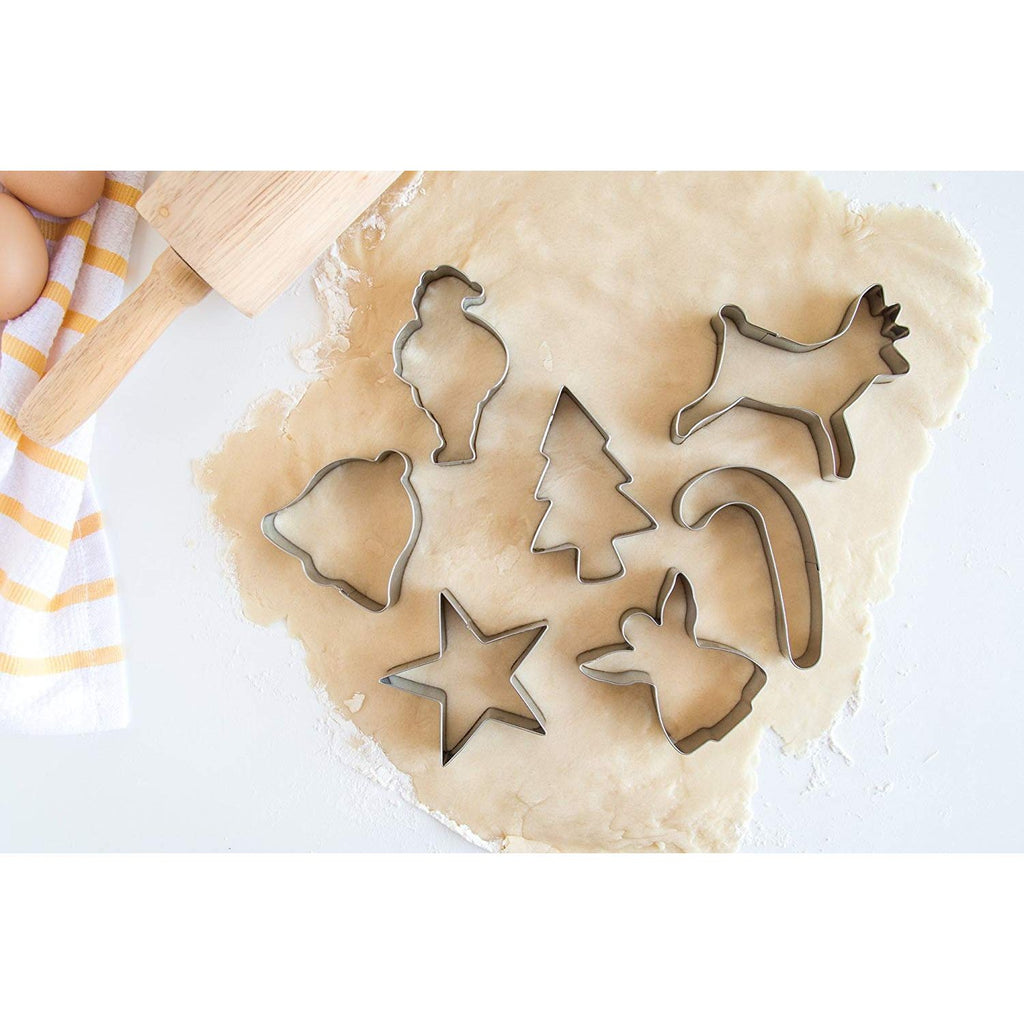 Ludique et festif, cet ensemble emporte-pièce est parfait pour la période de Noël. Cet ensemble de sept pièces comprend un Père-Noël, un ange, une étoile, une cloche, un sapin, une canne et un renne! Construit en acier inoxydable robuste, ces emportes pièces ont un éclat et un lustre attrayants qui seront mieux préservés lorsqu'ils sont lavés à la main et complètement séchés après utilisation. Préparez des biscuits découpés uniformes que les enfants adoreront décorer et laisser pour le Père Noël juste à côté d'un grand verre de lait. Idéal aussi pour le fondant ou l'artisanat