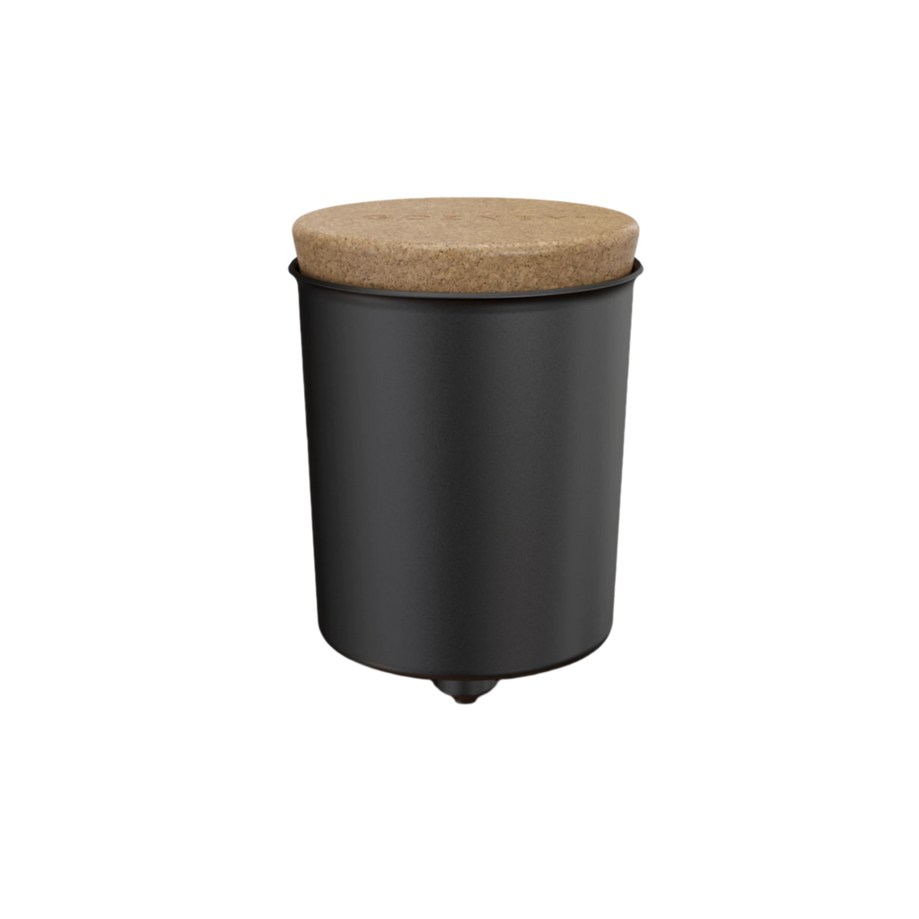 A black anodized aluminum funnel with a cork lid, precisely engineered to inject just the right amount of water into the oven and create steam at the entrance.