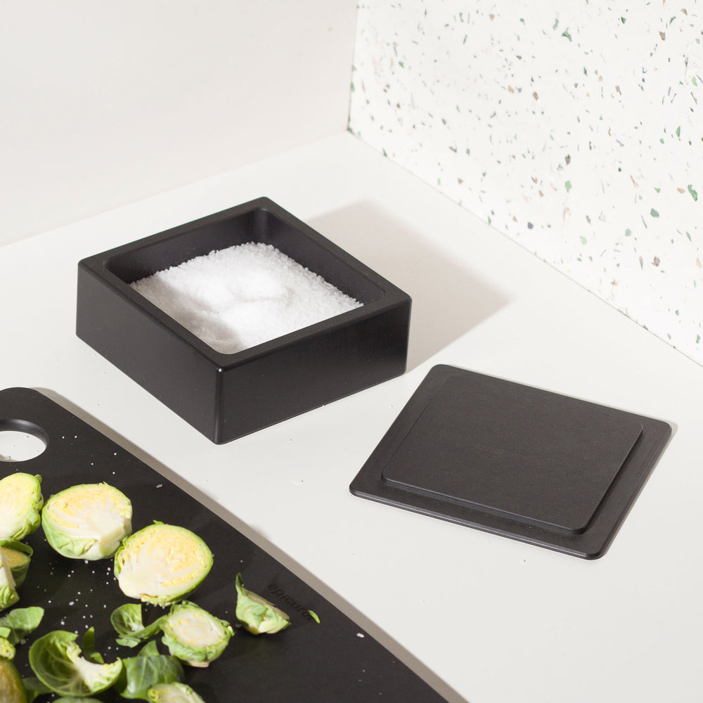 Epicurean's Salt Cellar easily stores a favorite salt or seasoning and can shift from a cupboard to a kitchen table with ease. A refined design in Epicurean's slate color allows the potential to use the cellar outside of the kitchen; store small favorites on a dress, a vanity, or anywhere. A square 4" x 4" base with a slightly overhanging light lid takes the Salt Cellar a perfect not-too-small and not-too-big size.