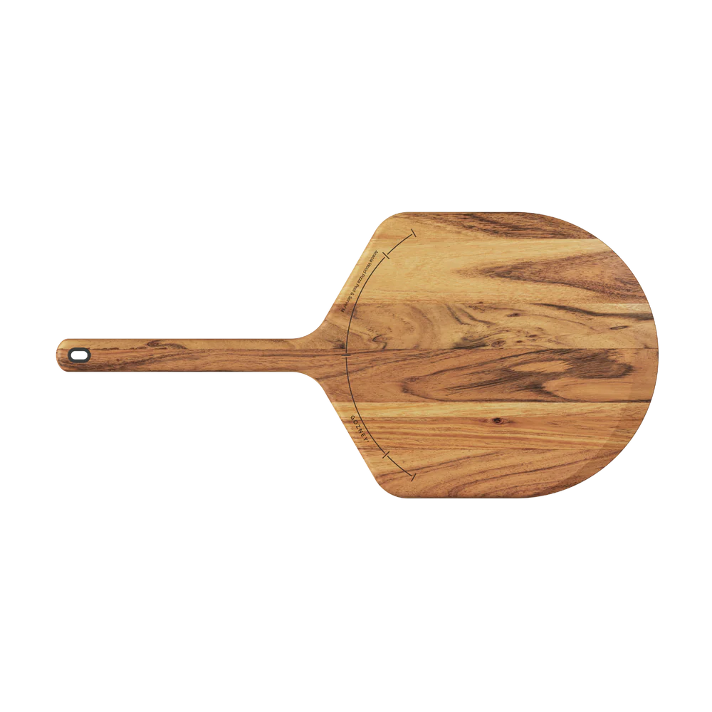 Building, launching, and serving pizza becomes child's play with this traditional pizza peel and its acacia wood tray. Designed to enhance the pizza chef's experience, it combines aesthetics, functionality, and durability.