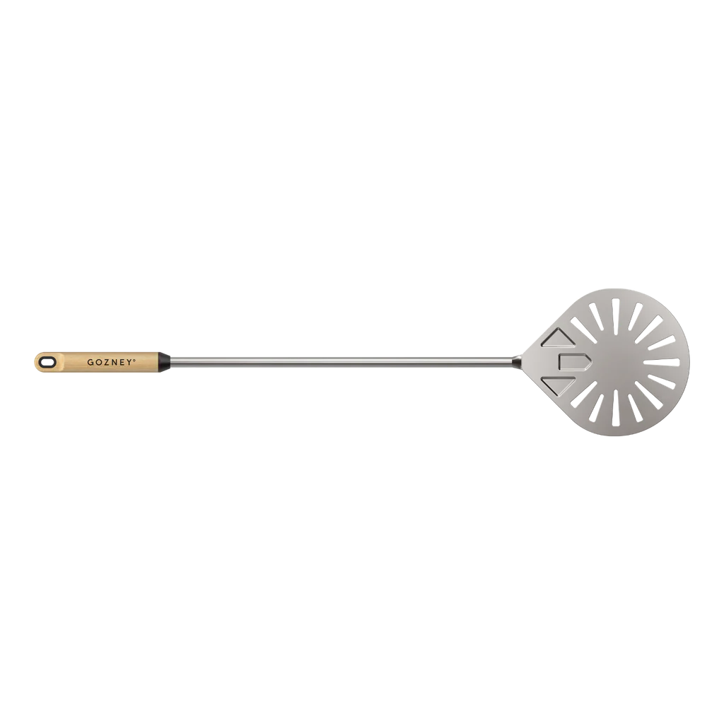 The Balance Pizza Peel delivers peak performance with ease. Combining a larger stainless steel blade with a comfortable beech handle, this durable pizza peel allows you to flip and move pizza with greater ease and control. Its teardrop shape optimizes the turning motion, with the blade fully pressed and welded for a snag-free experience. The perforated metal lets excess flour pass through for a delicious crust without a burnt taste. Designed to be ergonomic, the wooden handle brings the center of gravity closer to the hand for better control when moving pizza. The soft touch of the wooden handle is timeless and classic. Prepare pizzas with confidence thanks to the perfect balance of performance and ease.
