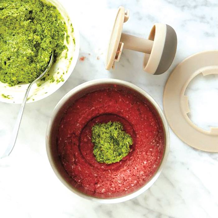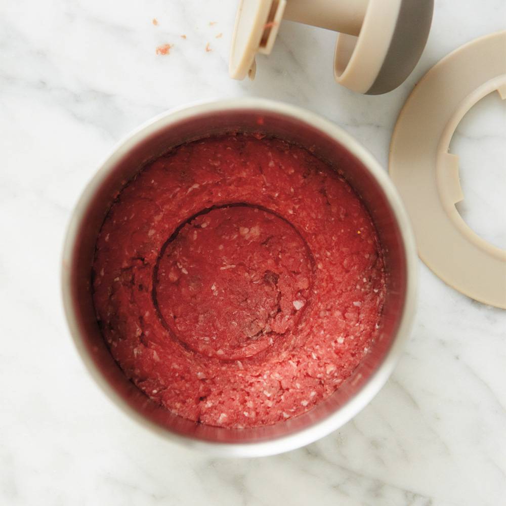 - The centre part of press allows for the stuffing of burger patties