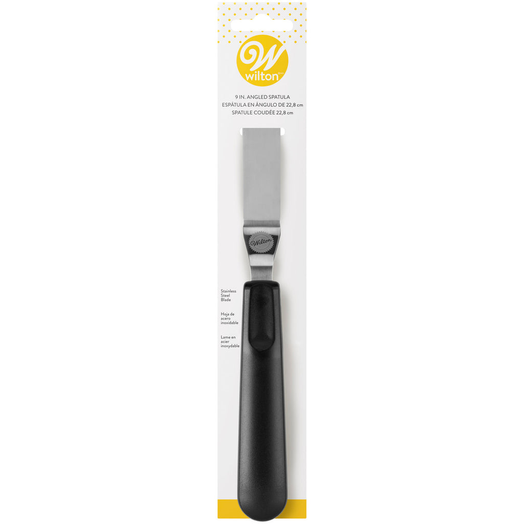 - Easily ice cakes, cookies, cupcakes and more with this 9 in. angled spatula; also great for spreading filling between cake layers and filling and striping decorating bags