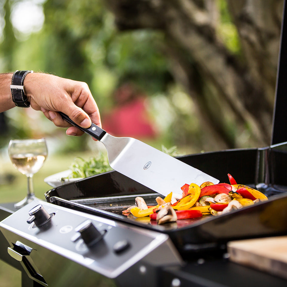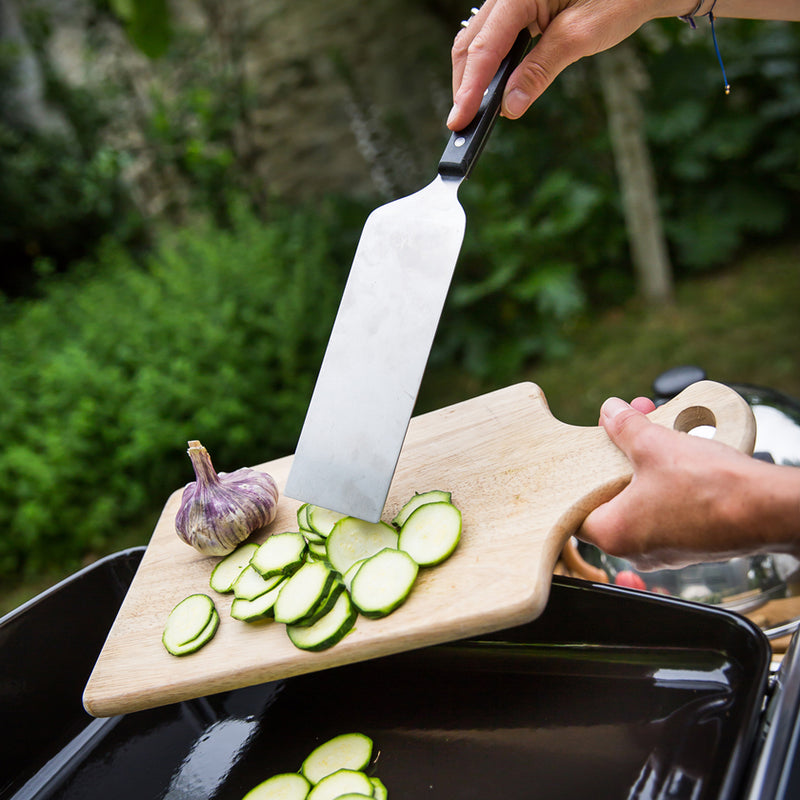 Specially designed to easily handle fish fillets, large pieces of meat or large quantities of vegetables, our long spatula is equipped with a non-slip handle that ensures safety and a good grip.