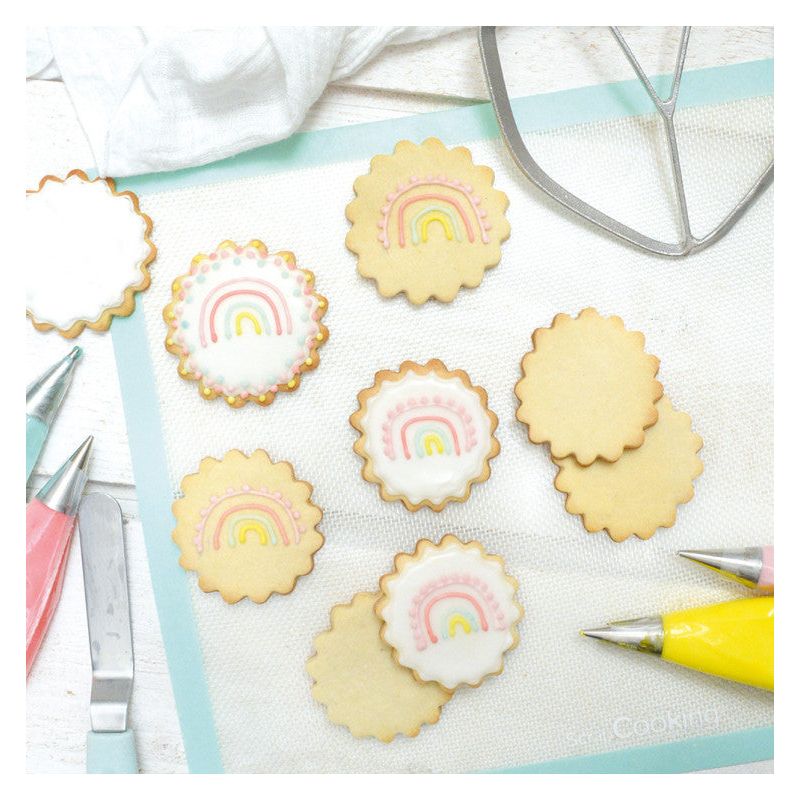 The silicone fibreglass baking mat is a 2-in-1 kitchen accessory: it is both a work surface and a baking tray. It is particularly suitable for making cakes, pastries, cookies, muffins, cupcakes and other preparations. The fiberglass fabric provides excellent heat distribution for even cooking of your recipes.
