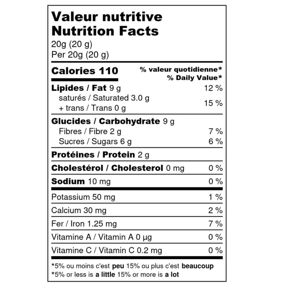 Ingrédients : Praliné (noisettes, sucre de canne*, gousse de vanille, sel de mer), Chocolat Jaguar 70% (théobroma bicolor, sucre de canne*, pâte de cacao*, beurre de cacao*, gousse de vanille), Grué de cacao, Chocolat noir 68% (pâte de cacao*, sucre de canne*, beurre de cacao*).