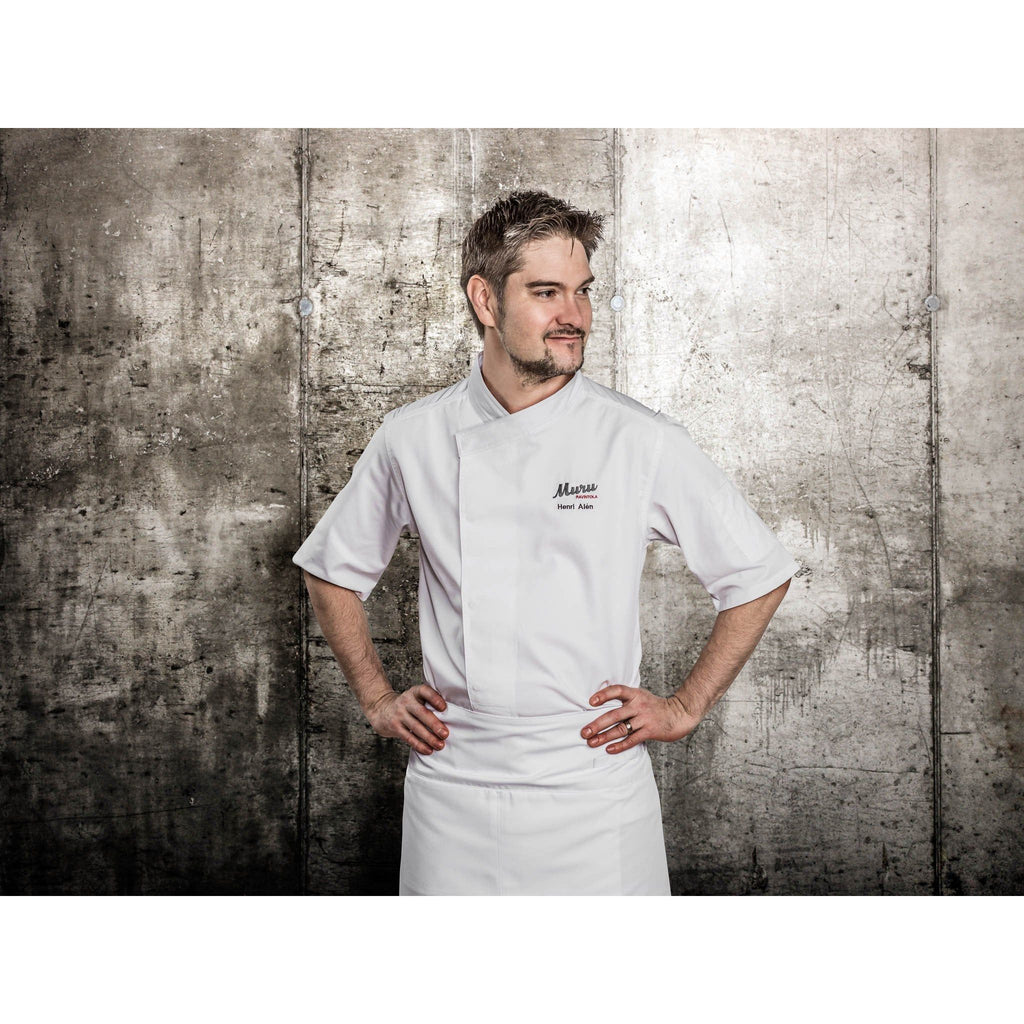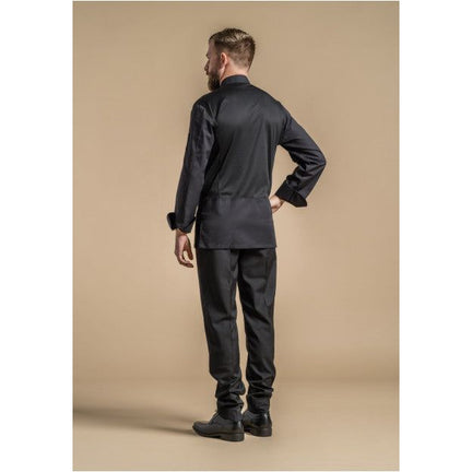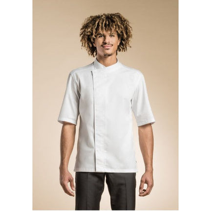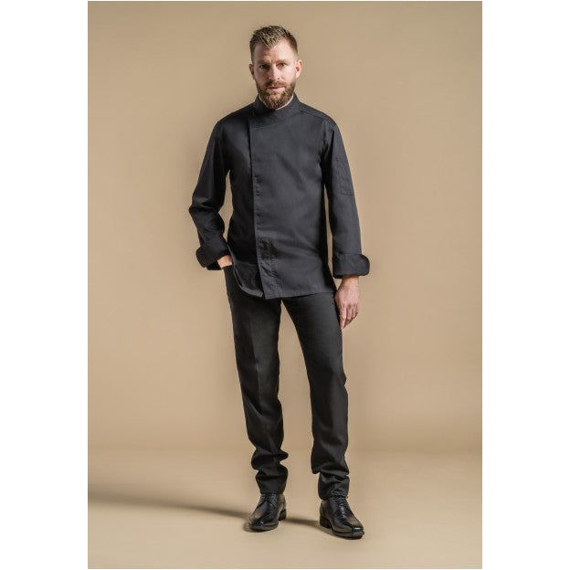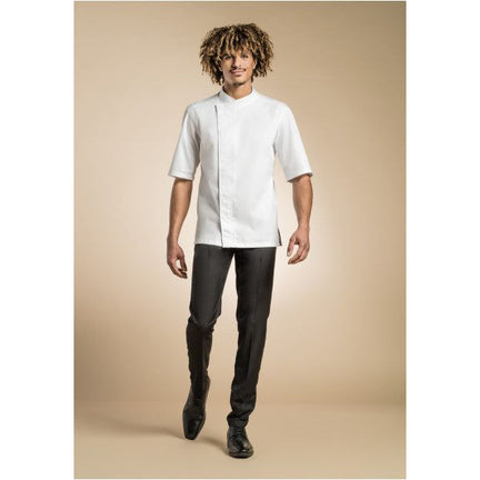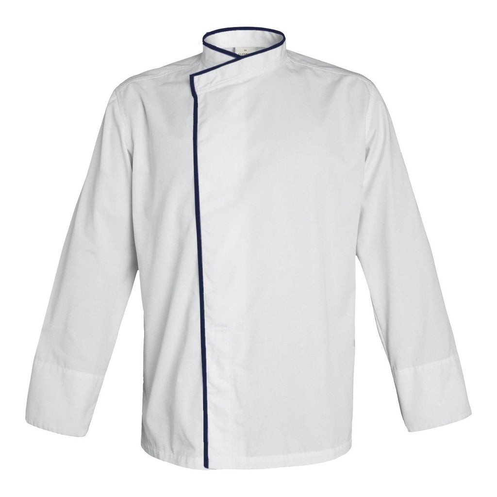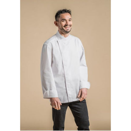 Veste de cuisine homme kimono. Pressions cachées. Poche stylo manche gauche. Fentes côtés.