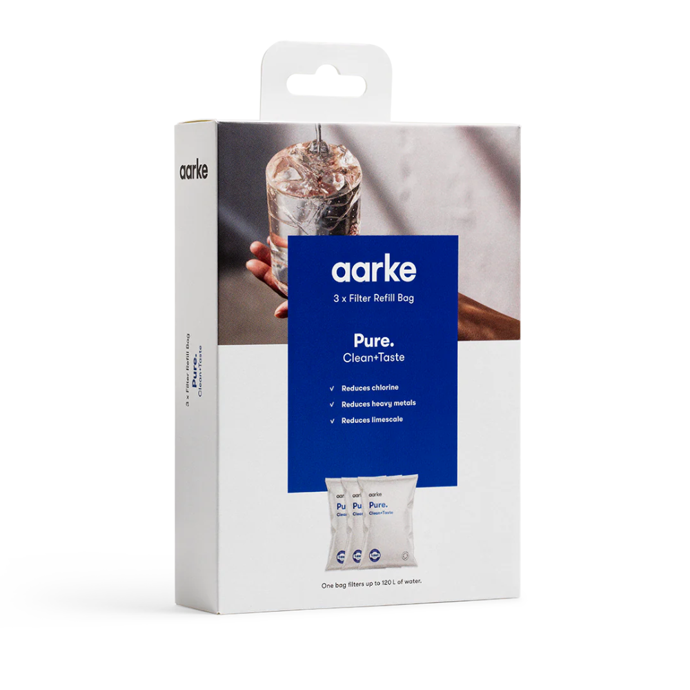 Les granulés filtrants Pure rendent votre eau plus douce, plus propre et plus savoureuse en réduisant le calcaire, le chlore et les métaux lourds. Fabriqués exclusivement pour la technologie du Purifier Aarke, les granulés contenus dans le sac sont versés dans la cartouche filtrante rechargeable du Purifier.