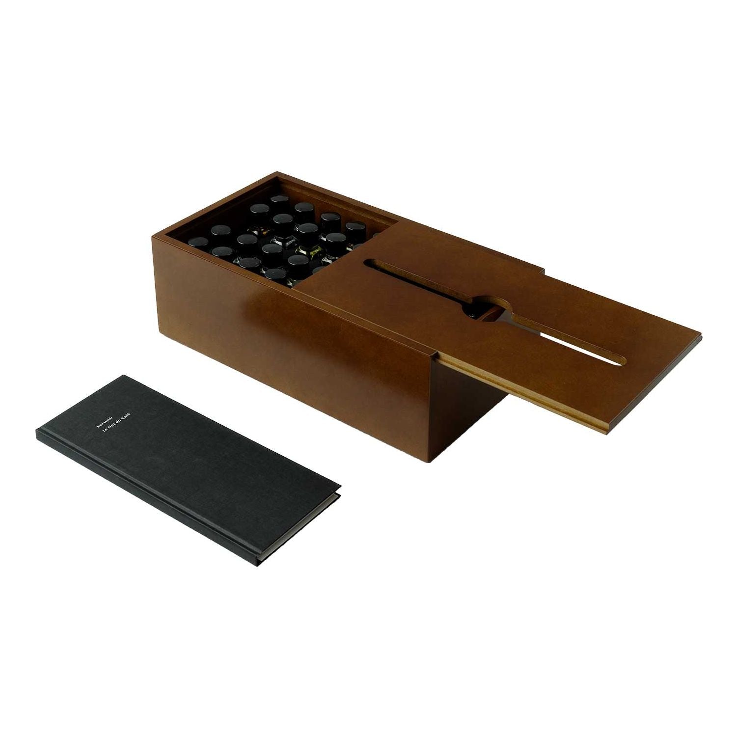 Les arômes et livre explicatif du Révélation sont identiques à ceux du Nez du Café Passion, format 260 x 150 x 85 mm, poids 1,850 kg.