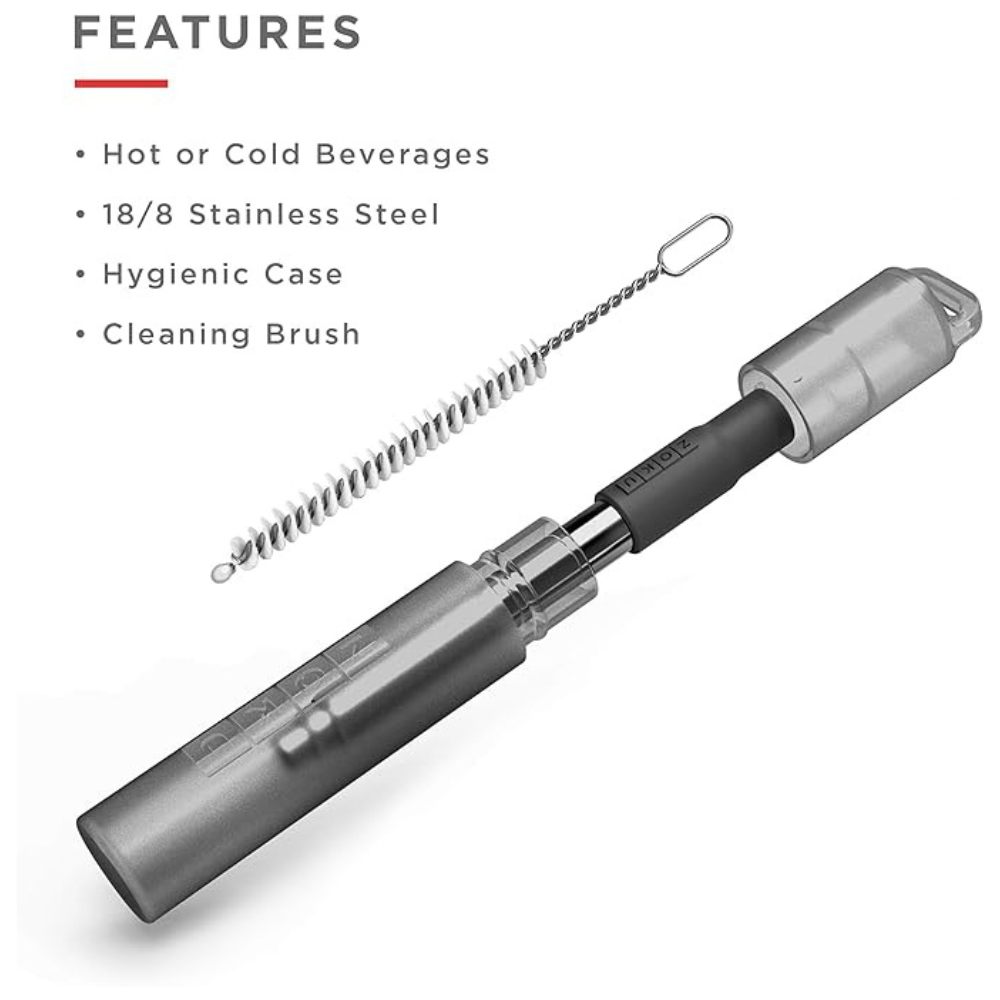 Pendant que les pailles sont interdites, d'autres alternatives à usage unique ont leurs propres inconvénients. Zoku a conçu des alternatives de haute qualité pour les pailles à usage unique et pliables. La paille de poche Zoku est une paille réutilisable pour la vie quotidienne en déplacement. Boîtier de transport compacte et facile à nettoyer. Une ingénierie de précision sécurise et protège votre paille contre les éléments extérieurs. Petite et légère pour tenir dans votre main, votre poche, votre voiture ou même un tiroir de cuisine. L'anneau à clé vous permet de l'emporter partout avec vous. La paille a un embout en silicone amovible et des télescopes, de sorte qu’elle s'adapte à presque toutes les tailles de verre. Lorsque vous avez fini de siroter, brosser la paille et la réduire à sa plus petite taille. Glissez la brosse dans la paille et glissez-la dans l’étui de transport.