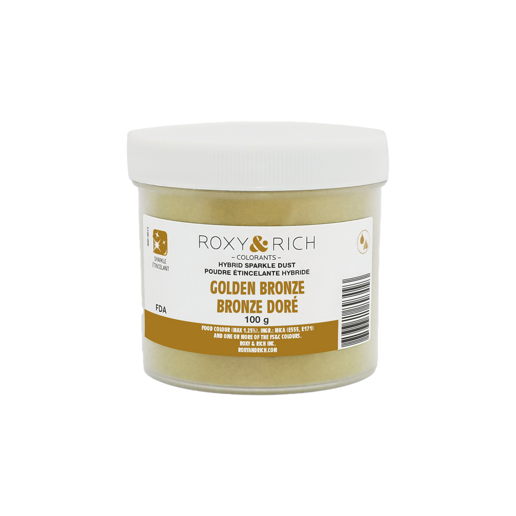La gamme de Poudres étincelantes hybrides offre un choix de 65 couleurs, dont 9 présentent un fini perlé, et ne contiennent pas d’oxyde de fer (E172). La couleur est obtenue en ajoutant une fine couche de colorant alimentaire sur les particules de mica. Cette façon de faire permet une brillance exceptionnelle qui surpasse les autres poudres étincelantes offertes sur le marché. Les Poudres étincelantes hybrides s’utilisent aussi bien à sec, qu’avec de l’eau, de l’alcool ou de l’extrait de citron. Les mêmes couleurs sont également offertes dans la gamme de Poudres lustrées hybrides pour des effets différents.
