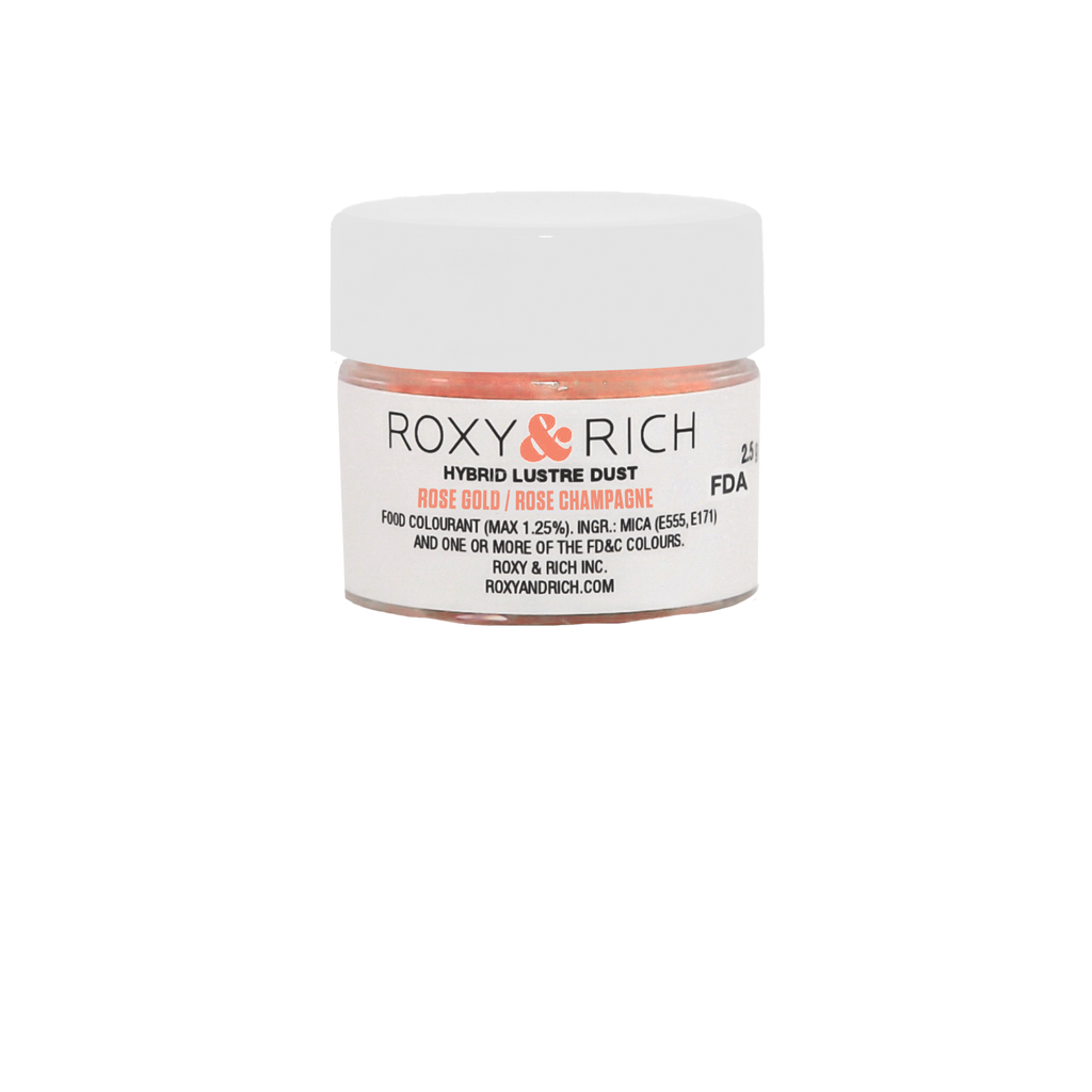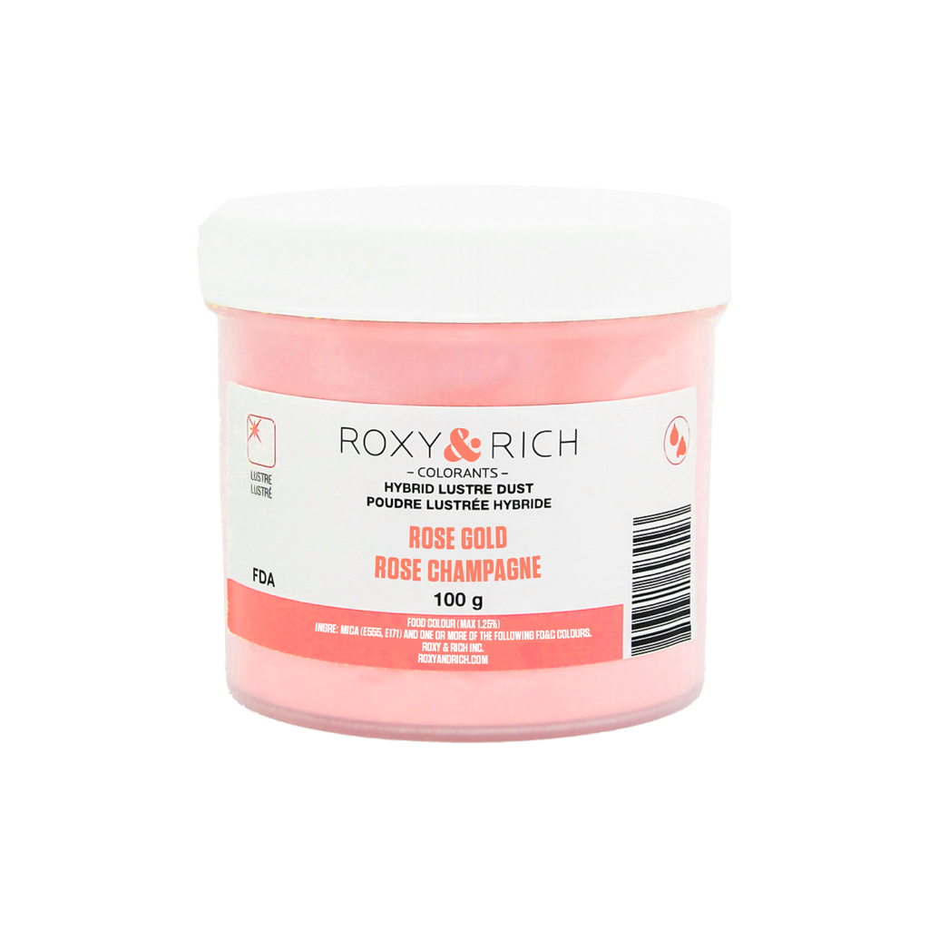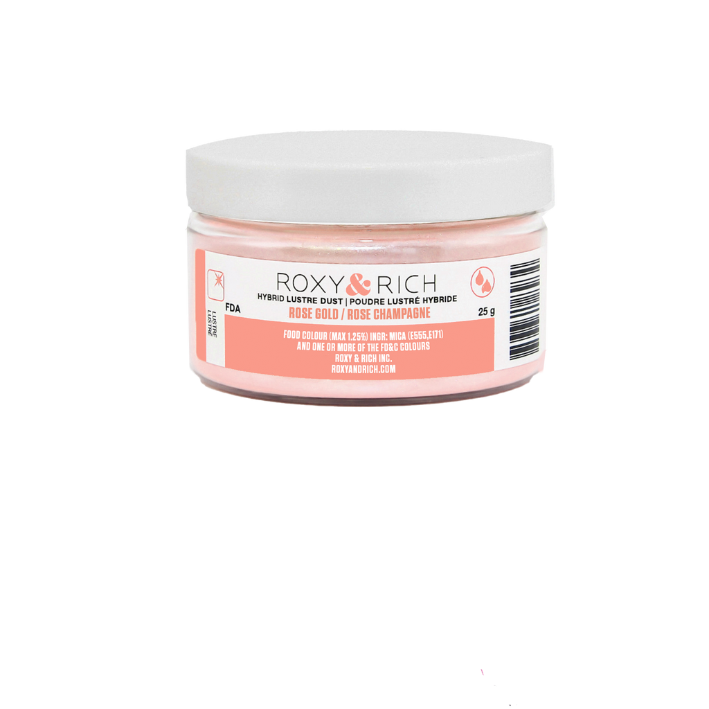 La couleur est obtenue en ajoutant une fine couche de colorant alimentaire sur les particules de mica. Cette façon de faire permet une brillance exceptionnelle qui surpasse les autres poudres lustrées offertes sur le marché. Les Poudres lustrées hybrides s’utilisent aussi bien à sec, qu’avec de l’eau, de l’alcool ou de l’extrait de citron.